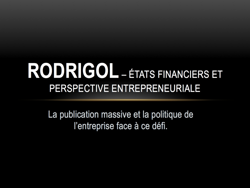 Les États financiers et les perspectives entrepreneuriales sont l'apanage des grandes sociétés de notre monde économique actuel. Les actionnaires sont ravis de voir l'ordre se déployer devant leurs yeux ébaubis. Voici en toute transparence ceux des Éditions Rodrigol 2015-2016.