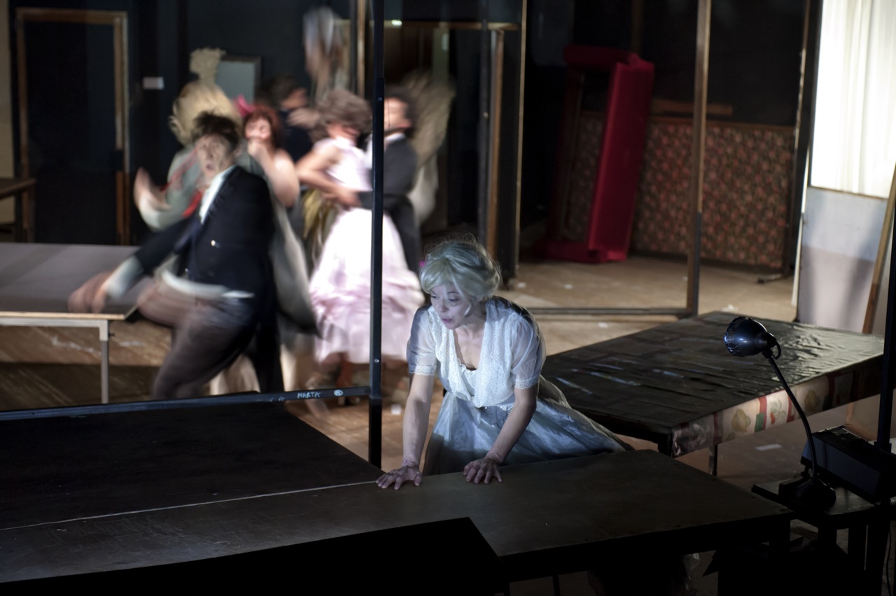 Passim serait une «étonnante archéologie de l’instant». Étonnante, certes, pour quiconque découvre, tel a été mon cas, le travail de François Tanguy. C’est une scène abandonnée, voire endormie, sombre et surchargée qui accueillait le public du FTA en première nord-américaine, et qui semblait s’étendre jusqu’à l’infini. Les (vieilles) planches étaient remplies de quelques dizaines de tableaux de toutes formes qui, dès le premier mot du spectacle – «Regardez !» –, se sont animés pour ne plus retourner à l’état d’inertie.