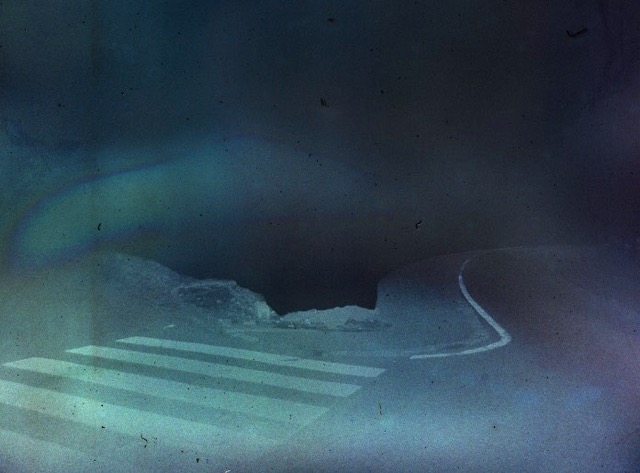 Je déambule ensuite devant la série de photographies de Daisuke Yokota sans me demander ce qu’elles peuvent bien représenter. Leur ambiance m’imprègne, me rappelle les films de David Lynch. Certaines formes sont reconnaissables, comme celles d’une route et d’une figure humaine, mais elles se fondent dans un lieu qui flottent au milieu de nulle part. Je pense d’abord que les photographies sont floues, mais, m’abandonnant un peu plus à mon imagination, je réalise qu’il s’agit là d’un écho. Celui-ci donne la forte impression d’une polyphonie au cœur même de l’image, comme si plusieurs voix tentaient de s’y faire entendre. Ce que rend visible Daisuke Yokota, n’est donc pas de l’ordre du lisible, mais de l’audible. « J’écoute ». Je repars, envoutée.