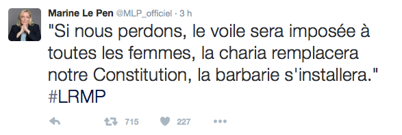 «Si nous perdons […] la barbarie s’installera», pour reprendre l’expression du Front national. Oui, le plus effrayant, le nœud émotif de cette rhétorique, au fond, c’est la crainte de subir la violence. En tant que mécanisme inné lié à l’instinct de survie, la peur est une émotion fondamentale. C’est aussi ce qui en fait un formidable instrument politique.