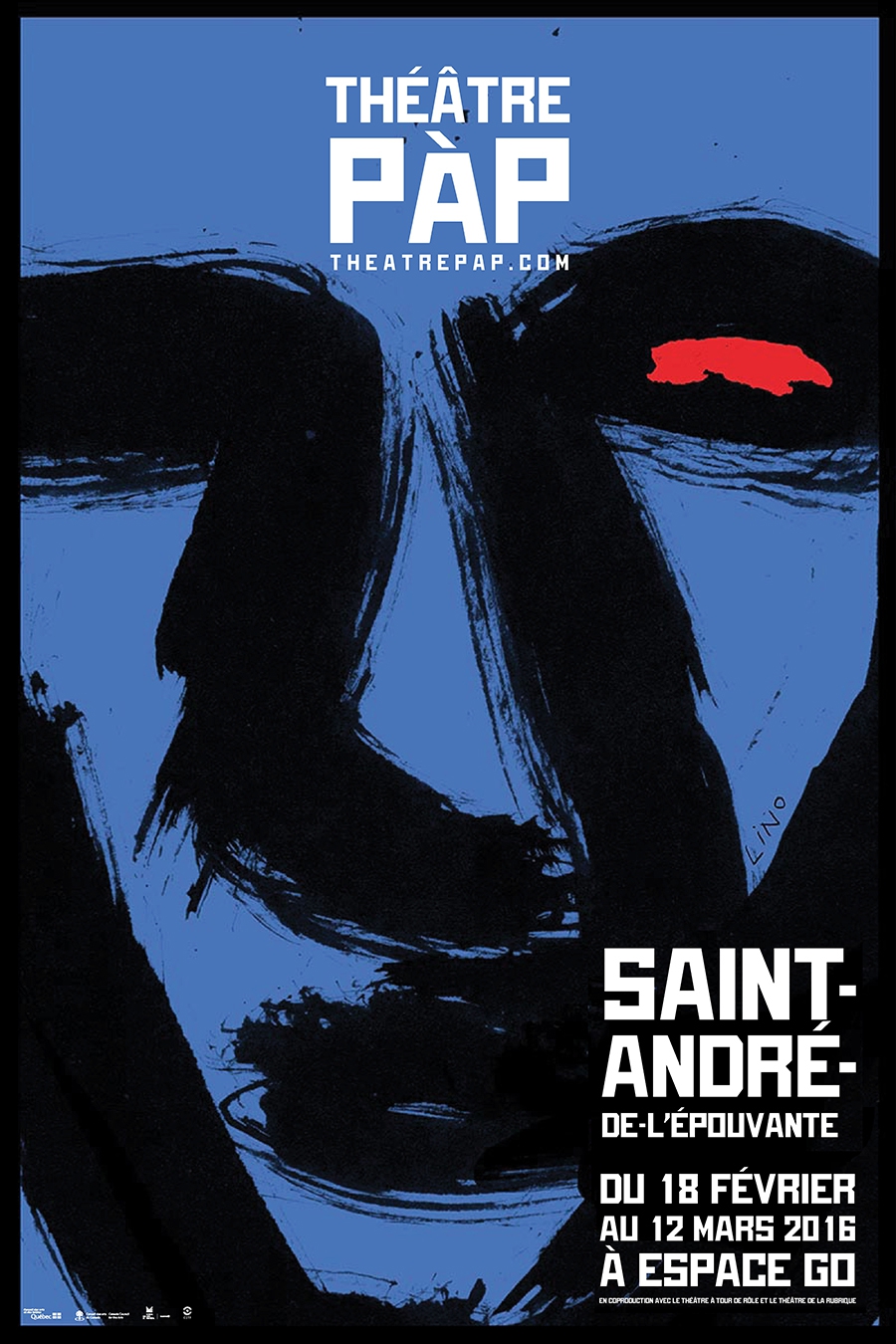 Saint-André-de-l'Épouvante, texte de Samuel Archibald; mise en scène de Patrice Dubois, avec Miro Lacasse, André Lacoste, Dominique Quesnel, Dany Michaud et Bruno Paradis; une production du Théâtre PÀP, des Productions À tour de rôle et du Théâtre La rubrique. Au Théâtre Espace Go jusqu'au 12 mars 2016.