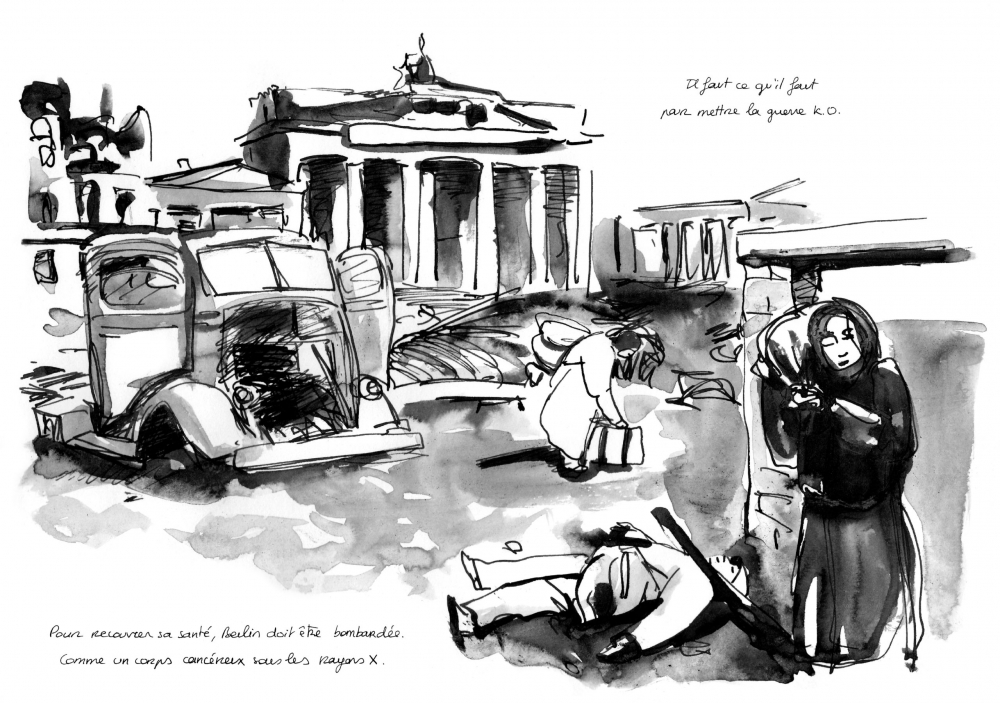 Comptant les jours, l’image de Nevi se languit dans l’attente du retour de Raoul, se distrait avec son compagnon félin, nourrit des fantasmes d’assassinat à l’égard de sa rivale Vera, et observe le monde à l’extérieur de sa maison depuis le soupirail de la salle de bain. Ce point de vue lui permet de constater l’ascension du parti national-socialiste en Allemagne, qui débouchera sur les catastrophes que l’on connaît, puis elle assiste tour à tour à la montée en popularité du swing, à la construction puis au démantèlement du Mur de Berlin, aux jeux olympiques de Munich, mais également à des événements plus distants de l’Allemagne, tels que les explosions atomiques de 1945, la première Guerre du Golfe et le génocide au Rwanda.