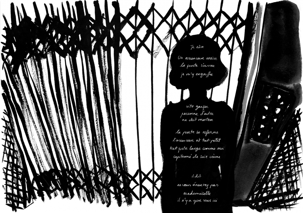 La demoiselle en blanc est le récit d’une rencontre qui n’a jamais lieu et des sentiments associés à un désir non assouvi. La mise en image par Goldberg est réussie; l’usage relâché et ondoyant de l’encre de Chine délavée produit des nuances de gris onctueuses et génère un flou graphique qui contraste avec la précision acérée de la photographie. On est loin de la régularité du trait qui caractérise généralement la bande dessinée, et ce changement de registre donne un caractère inattendu aux images, ayant pour effet de renouveler l’attention et l’intérêt pour la portion visuelle de cette œuvre page après page.