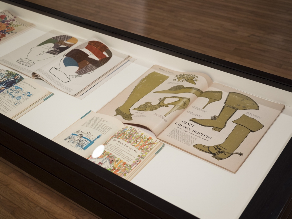 La première section de l'exposition présentait son travail d'illustrateur et de graphiste dans les  magazines. Rappelons qu’à la fin des années 1940, Warhol est frais sorti de la Carnegie Institute of Technology. Pour le jeune artiste, le monde des revues offre alors des possibilités de travail intéressantes d’autant plus qu’à l’époque, les éditeurs de magazines américains commencent à recruter un nouvel acteur dans la chaîne de publication : le directeur artistique, chargé de mettre un peu d’ordre sur la page. C’est l’occasion pour Warhol de faire des rencontres marquantes avec des designers graphiques immigrés d’Europe qui apportent avec eux tout un bagage esthétique tiré des mouvements d’avant-garde tels le Bauhaus, De Stijl ou encore le constructivisme