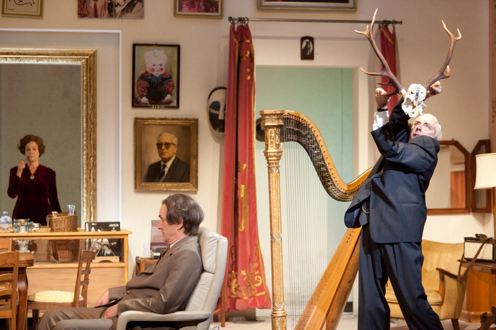 Faut-il également mentionner que les deux familles sont en quelque sorte interchangeables, si bien que vers la moitié du spectacle l’espace est habité par les Ratinois auxquels les Malingear rendent visite – encore une fois comme dans la pièce maîtresse de Ionesco – pour leur annoncer que le mariage entre Frédéric et Emmeline pourra avoir lieu. S’ensuit un long dîner qui se terminera en saignement de nez généralisé au son de la chanson «Le papa du papa» de Boby Lapointe. Dans le même ordre d’idées, le comédien Graham Forbes Valentine incarnera autant les deux domestiques Joséphine et Alexandrine, enfin l’oncle Robert.