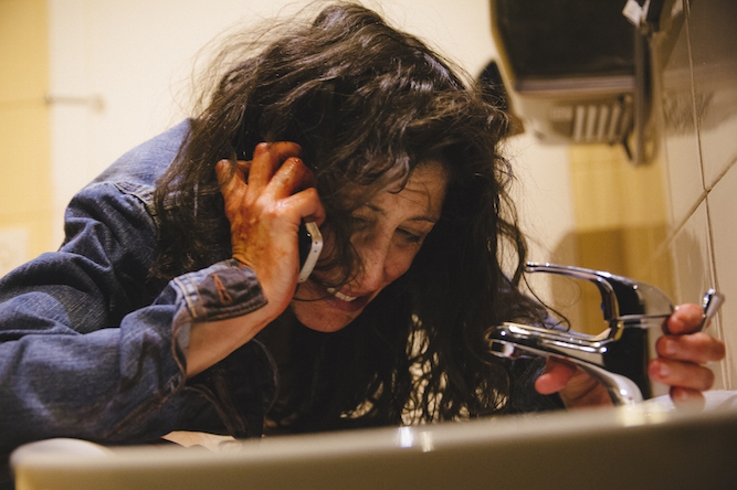 À l’inverse, je trouve dans le programme de Go Down, Moses ces mots de Romeo Castellucci qui revient au FTA pour la cinquième fois : «Le théâtre, dans son origine, sa structure, est religieux. Et le mot religion vient du latin, religare, tenir ensemble ; or, le théâtre, fondamentalement, ce sont des gens qui se tiennent ensemble dans un même lieu, pendant un même temps.» Je dois lui donner raison : autour de son objet à la symbolique foisonnante, le récit contemporain de la mère du prophète qui abandonnera son fils non pas dans un panier sur quelque fleuve, mais dans un gros container à déchets déjà bien rempli, unique élément à composer ce tableau qui sépare la longue et poignante scène de la naissance très ensanglantée dans des toilettes publiques (c’est à ce moment que résonne un chant d’esclaves américains – celui-là même qui a servi de titre au spectacle? je ne saurais dire…) et l’interrogatoire de la génitrice au poste de police.