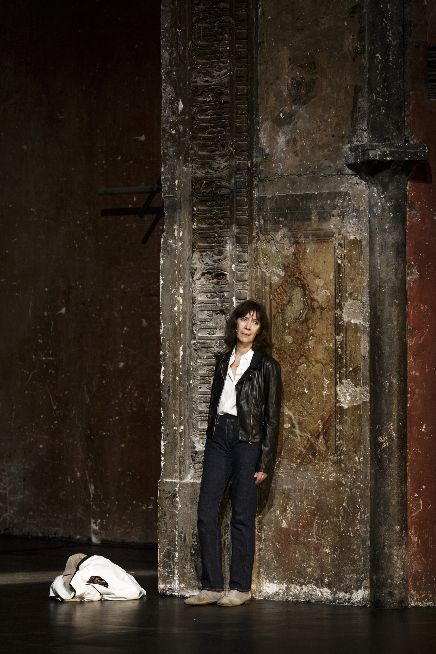 Quelques instants plus tard, la voix d’Anne Alvaro résonne, soutenue par l’ambiance sonore de La Muse en Circuit (Centre National de création musicale), et c’est de l’autre côté de la rue Plessis que l’on retrouve l’actrice s’adressant à nous, marchant vers nous, donnant ainsi le coup d’envoi. Rapidement la voix d’Audrey Bonnet lui répond; le dialogue, le débat, la quête, la chasse s’installent alors que l’actrice erre dans la foule, telle une proie apeurée. Évoluant à même le public, dans un décor du réel qui ne pourrait mieux épouser l’esprit scénographique du texte de Koltès, le duo de comédiennes finira par entrer dans la salle par l’arrière, conviant les spectateurs à faire de même pour la suite des choses. À l’intérieur nous attendent quelques bancs de part et d’autre d’un espace sobre et noir, avec pour seul élément de décor un lampadaire.