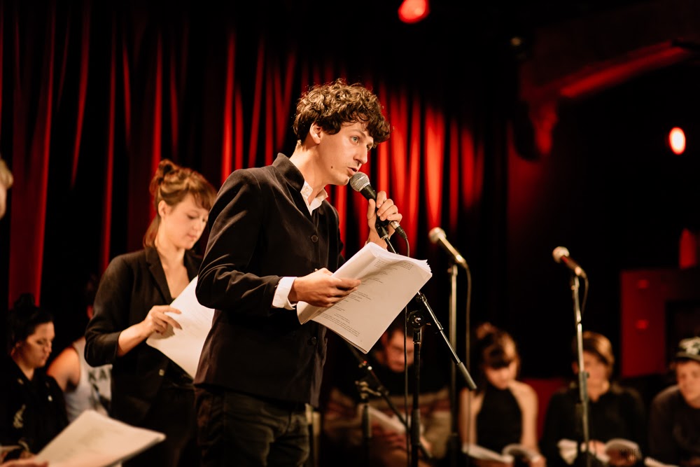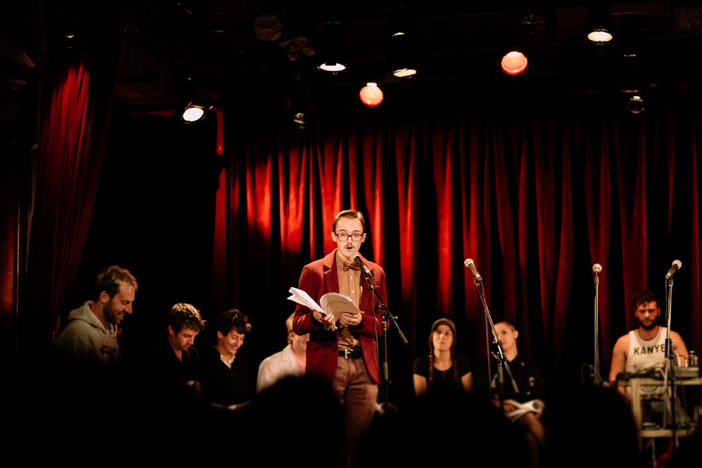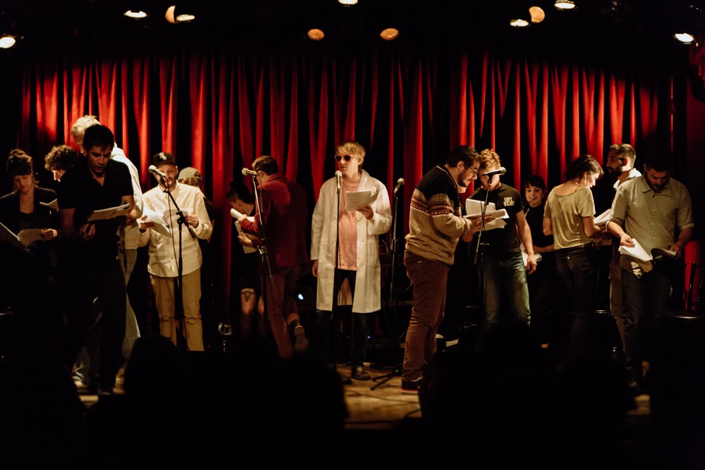 Si cette trombe poétique occasionne un mélange des voix qui rend parfois difficile, rétrospectivement, d’attribuer à chacun ses paroles propres, elle participe malgré tout à l’effet collectif rémanent de la soirée. Par le biais de leur mise en dialogue, ce sont de nouveaux poèmes qui ont été créés pour l’occasion, l’unité donnant naissance à une totalité poétique plus grande que la somme des premiers. Nous quittons cette soirée pris de l’envie d’en faire un point de relance à l’événement poétique, de partir de l’unité du groupe pour revenir à la singularité de l’individu, de remettre ces poèmes dans leurs contextes originaux et relire les poètes de l’Écrou pour eux-mêmes, sous le nouvel éclairage apporté par ce beau délire commun. Aucune description des performances individuelles donc, je prends le parti de laisser le poète à sa place, celle que Marjolaine Beauchamp lui attribuait très tendrement en clôture du spectacle : «la place d’un poète dans la société, c’est dans un wolfpack à l’abri d’un jury de pairs.»