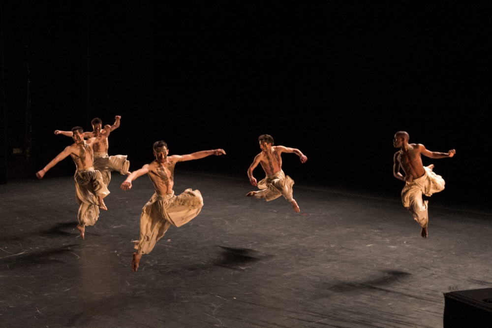 Tu reconnaîtras certains mouvements répétés à outrance au fil de la danse, tu ne sauras pas exactement combien de fois. Tu essayeras peut-être de les compter. Tu ne comprendras pas nécessairement l’hébreu, mais tu auras l’impression d’entendre plusieurs fois la même phrase, les mêmes mots. Tu as raison ; « Echad Mi Yodea » est ce que l’on appelle une chanson cumulative, elle commence avec une phrase, à laquelle on ajoute une seconde phrase tout en répétant la première et ainsi de suite. Ici, Naharin associe un mouvement à chaque phrase ; les danseurs se tiennent le visage, posent les mains sur leurs genoux, bougent la tête, miment un coup de poignard en pleine poitrine, le tout parfaitement synchronisé.