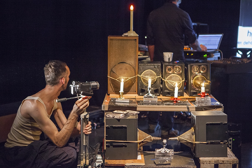 La représentation tient une partie de son intérêt de la fascination pour le « comment ça marche ? » À la manière de magiciens ou d’artistes de cirque, les interprètes présentent parfois l’outil qu’ils vont utiliser au spectateur avant d’effectuer une action, comme pour attester de son authenticité ; « voyez, il n’y a pas de trucage », semblent-ils dire. On s’émerveille alors de la prouesse technologique et de l’inventivité des bidouilleurs en même temps qu’on cherche à comprendre où est le truc, s’il y en a un. On nous annonce en ouverture de représentation que le pourcentage de « plantage » est d’environ 10% et nul doute que cette tension joue toujours sur le spectateur.