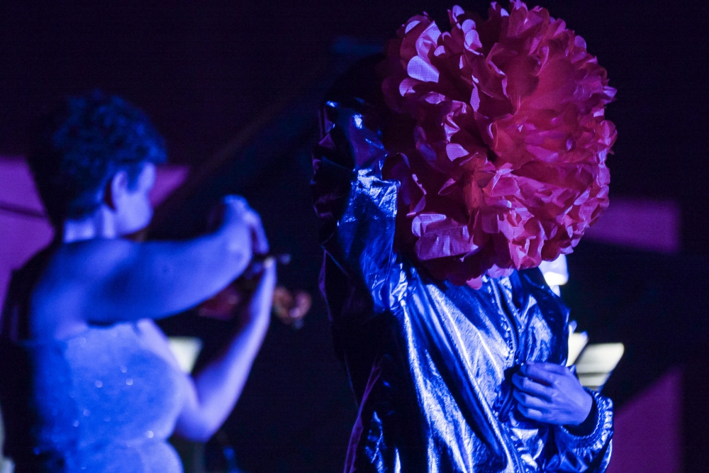 L’heure est venue pour Karina Champoux d’entamer le quatrième et dernier tableau. La musique se poursuit et l’interprète s’installe en avant-scène où elle déplie lentement une fleur en papier. Le bruit du papier froissé se mêle aux instruments et nous offre un bref instant de sursis pour récupérer du solo de St-Pierre et tenter d’analyser ce que l’on vient de voir.