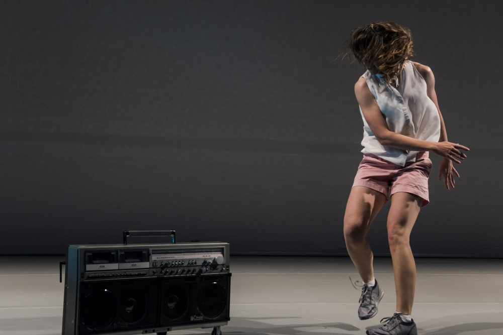 Piece for person and ghetto blaster, concept, texte, mise en scène et performance : Nicola Gunn ; choregraphie : Jo Lloyd ; son : Kelly Ryall ; audio et vidéo : Martyn Coutts ; lumières : Niklas Pajanti ; costumes : Shio Otani ; dramaturgie : Jon Haynes ; direction de production : Gwen Gilchrist ; production : Jenny Vila. Présenté du 27 au 29 septembre à L’Usine C (Montréal).