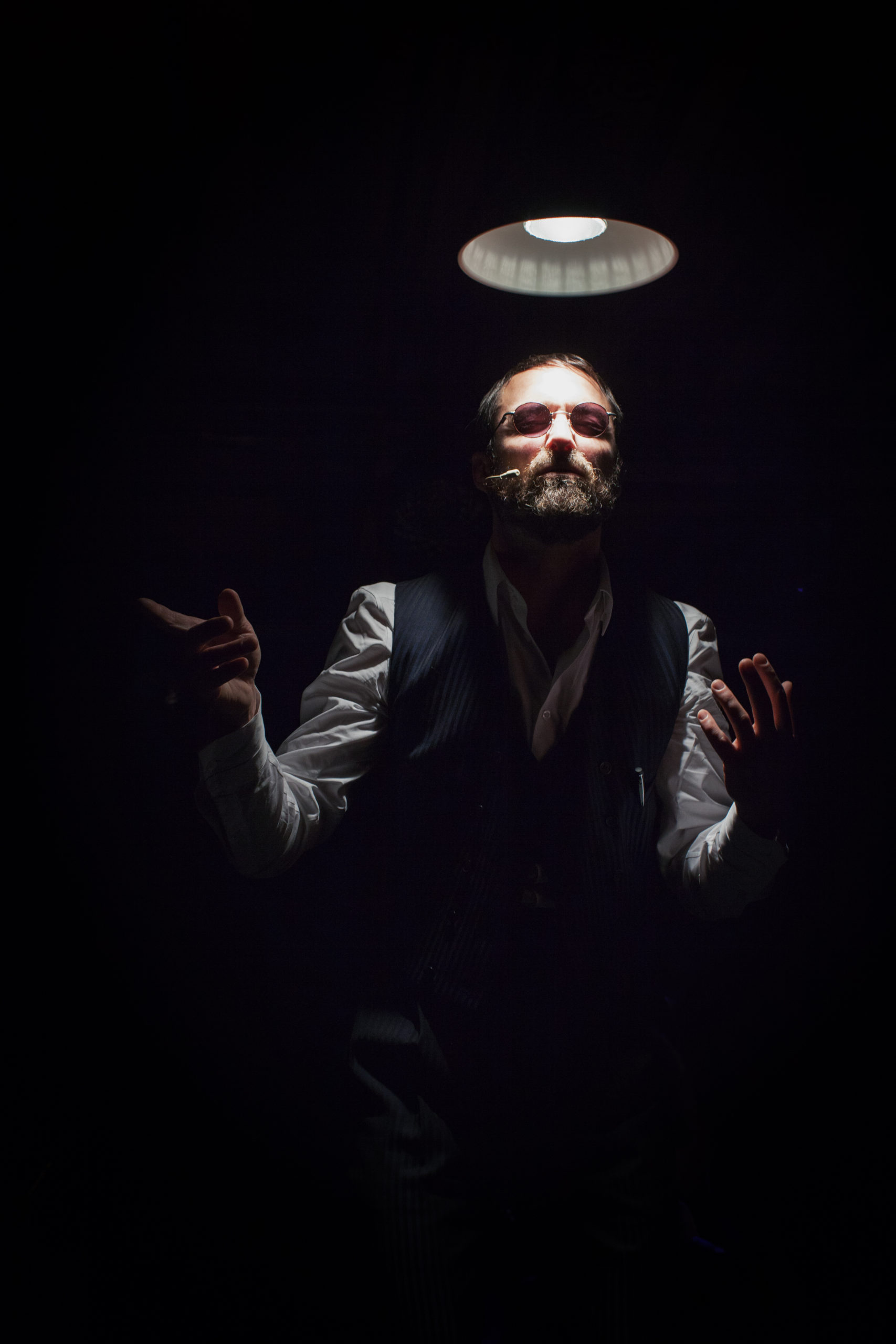Alternance de chansons matinées de milonga et de textes métriques performés avec grâce par Sébastien Ricard, la pièce visite une série d’évocations, de lieux intérieurs enchâssés dans une double trame mythologique et policière. Durant les parties non-chantées, le poète, envisageant le public, s’adresse à un inspecteur imaginaire, mettant progressivement en place, au travers de la structure de l’interrogatoire, les linéaments d’un récit politico-poétique où l’incrimination du poète, concierge de cette mystérieuse bibliothèque interdite, renvoie au thème de la littérature comme forme de résistance.