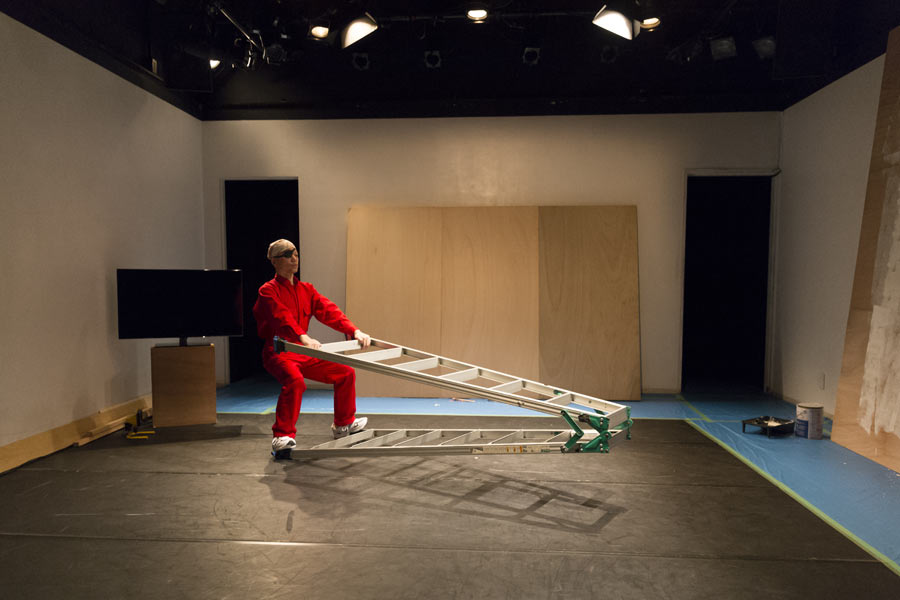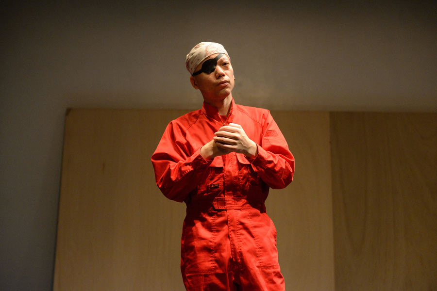 « Le nomadisme me poursuit au bout du monde », écrivait le romancier Éric Faye, en résidence d’écriture au Japon. « There is no form », peut-on lire sur un écran scénique du Wilder, célébrant l’imprévu du corps dansant. Familier avec l’informe, Kim Itoh dit de ses gestes insaisissables qu’ils sont sans mots. L’échelle s’adresse à l’artiste, habillé en travailleur de chantier : « Qui es-tu ? Que fais-tu ? Quel est ton métier ? » Le dialogue incongru, chorégraphié par Zan Yamashita, se poursuit : « Je danse. (…) Mais je ne sais pas ce que je fais. (…) Tout ça vague (…) ça flotte, le fluide lymphatique. La lymphe est incompréhensible. Je danse comme la lymphe. Comme un appendice.» Ainsi Kim Itoh livre-t-il sa performance, Namae Ga Nai (littéralement, Pas de nom).