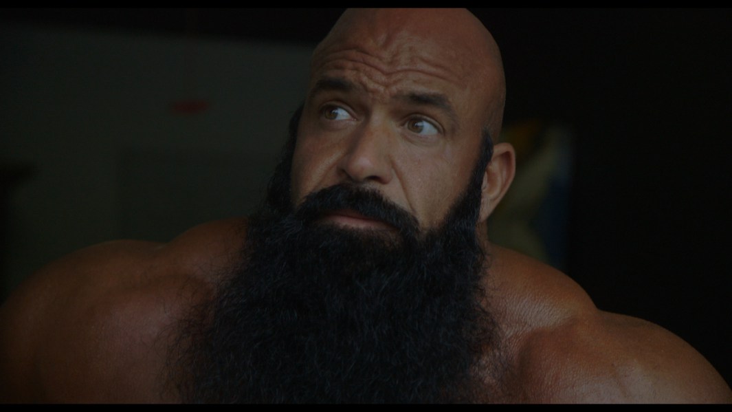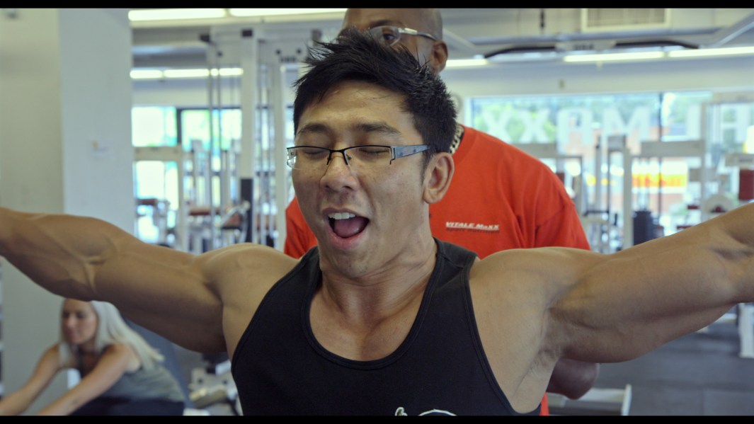 Côté s’y prend avec la curiosité qu’on lui connaît, celle d’un enfant qui, la langue sortie, appuie du doigt sur un crapaud qu’il tiendrait captif. Cette fascination n’a rien de passive, elle s’accompagne toujours chez lui d’un désir de se prendre le contrepied. Au lieu de répondre aux attentes de ces Hercules, le metteur en scène – le terme est plus qu’approprié, tout ici étant fictionnalisé à partir d’entrevues réalisées au préalable – refuse de substituer sa caméra à leur regard, d’encourager la fixation narcissique. Son dispositif recherche plutôt l’envers, les angles morts, ce qui échappe au contrôle rigoureux : les marottes d’un tel qui se fait prendre en photo (les dents blanches sur une barbe noire, « ça fait pas des belles poses »), la cigarette d’un autre, qu’une copine lui reproche, les scènes de ménage. Le banal et le quotidien sont mis à profit pour nous les présenter sous un jour inédit. D’une confusion première, jaillit graduellement une empathie à laquelle le spectateur s’abandonne, heureux de reconnaître chez ces armoires à glace les mêmes désirs, les mêmes craintes.