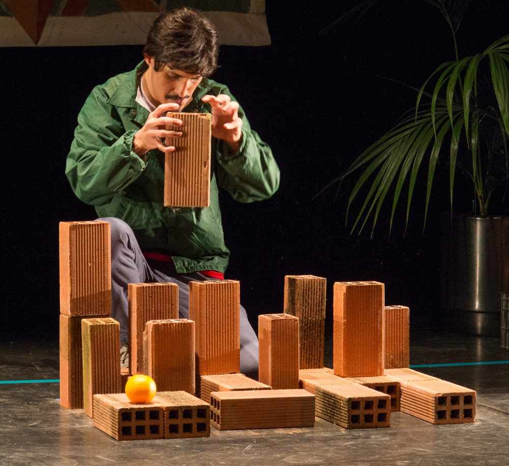 La pièce est faite de micro-récits – l’arrivée de Rodríguez/Ramirez dans la ville, la recherche d’un logement, la première journée à l’usine, les discussions avec ses logeurs, etc. –, de quelques faits et statistiques sur la ville et sur l’économie mexicaine et d’un extrait d’entrevue (en deux segments) où Rodríguez explique sa démarche. Il le fera à l’aide de trois fois rien (deux chaises, un petit écran pour des projections, une peinture en toile de fond montrant Tijuana et, au loin, San Diego, des briques et des bouteilles de bière pour construire une maquette de la ville), misant sur l’ingéniosité du travail scénique pour recréer les lieux et les situations.