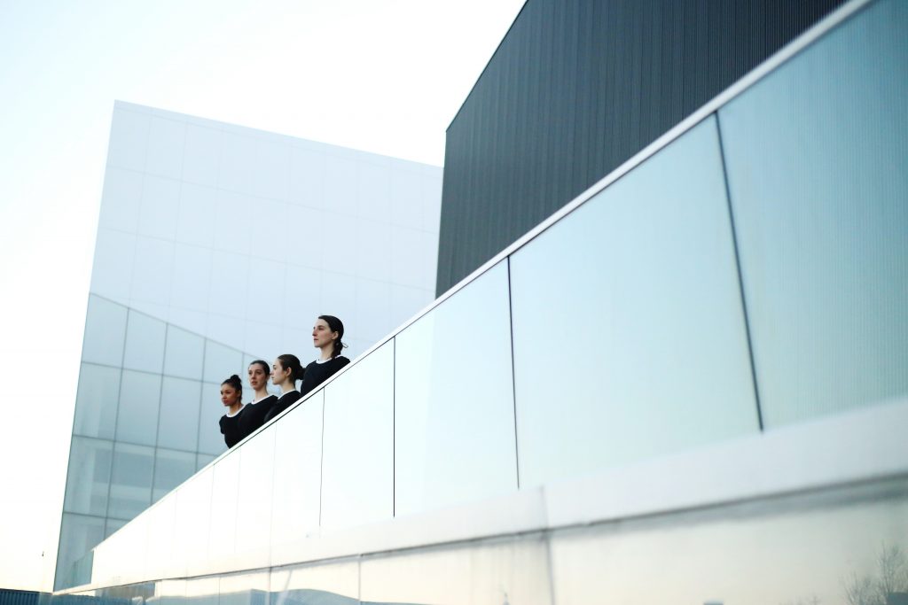 Topo, une chorégraphie d’Ariane Dessaulles ; interprétation et collaboration à la création : Ariane Dubé-Lavigne, Laurence Dufour, Kim L. Rouchdy, Jeimy Oviedo ; composition et conception sonore : Joey Zaurrini ; conception vidéo : Emilie Allard ; scénographie : Marie Lépine ; conception des éclairages : Darah Miah ; conception des costumes : Jessica Boucher.