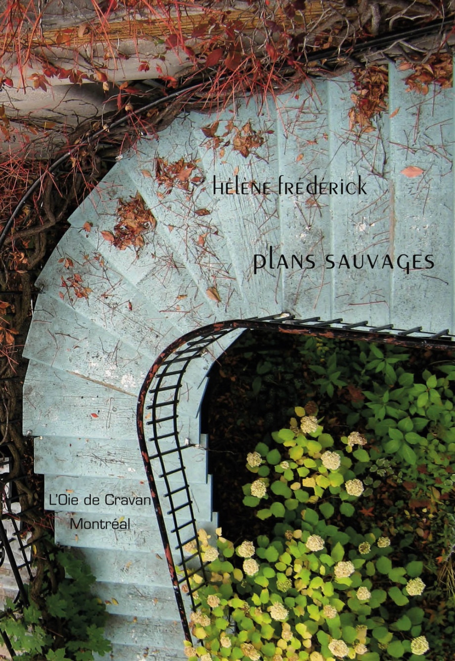 Il y a déjà le titre sur la couverture, les plans sauvages, qui se tient sur l’escalier, une volée de marches arc-boutée entre l’éclat de fleurs jaunes et un ramassis de feuilles à l’orange amère. C’est sur ce plan sauvage, la photographie d’un escalier dont la peinture s’écaille, abandonné à la végétation, au temps et à la vie qui s’hasardent, c’est dans cette vacance que s’ouvre le premier recueil de poésie de l’écrivaine Hélène Frédérick.