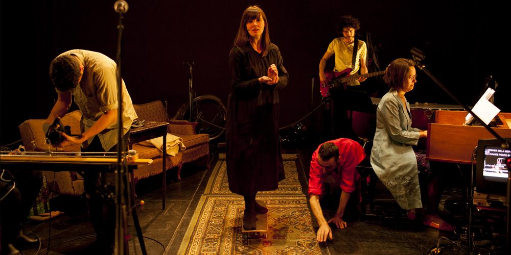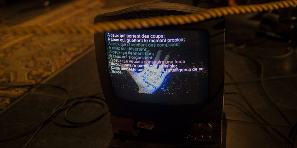 Une cercle est tracé, qui se resserrera plus tard dans l’ombre d’une projection. Le programme du spectacle, véritable petit livre d’artiste et livret des chants, nous donne l’argument. Sept personnes se sont retranchées du monde, et mettent en scène l’épopée d’une lutte, comme depuis le fond d’une guérilla essoufflée. Performance indisciplinée en continuité avec la démarche de L’Orchestre D’Hommes-Orchestres (LODHO), Tomates se cherche entre fil narratif et musicalité, images puissantes et propos durs, dans une œuvre quasi-totale. Un opéra où se mêlent la fable et les réflexions philosophiques à saveur insurrectionnelle, qui n’examine pas les lignes de force d’une possible révolte pour la prendre plutôt au revers.