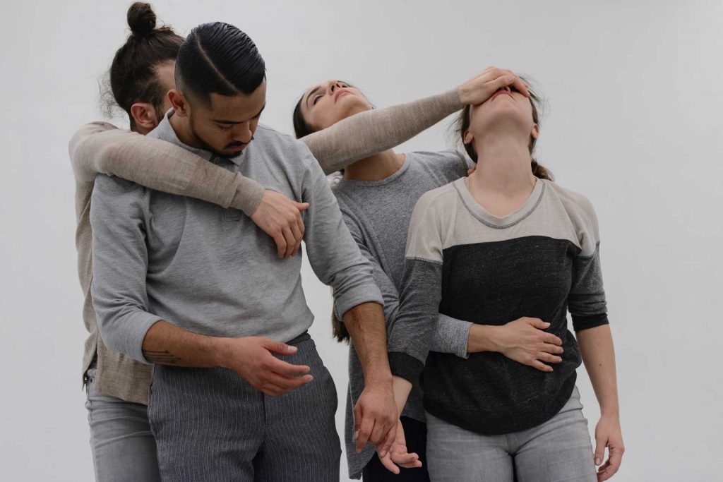 Cette danse de robot pourrait s’étirer en longueur si elle n’était renforcée par l’histoire qui nous est, d’une certaine manière, racontée. À travers les mouvements des danseurs, nous sommes témoin du tiraillement constant de ces personnages : leurs mouvements sont composés, d’une part, de tics mécaniques empruntés à la robotique – desquels ils veulent se défaire en tentant de comprendre et donc d’imiter,– d’autre part, d’une gestuelle assimilée à celle des humains. Ainsi, c’est par le toucher que la progression aura lieu : si les personnages dansaient isolément au tout début, il se produit une rencontre, timide tout d’abord, sans contact, au mitan de la pièce. Ces rencontres apparaissent à la seconde moitié, avec les portés et les mouvements de groupe. Il aura fallu pour cela toucher le public pour apprendre. Mais l’apprentissage sera ardu, et les tics persisteront jusqu’à la fin. La métamorphose restera donc en suspens, et une vision pessimiste se dégage alors de la fable. Pourtant nous quittons la salle bercés : l’univers très solide et très maîtrisé nous habite, nous transmet son énergie, une énergie douce. Et nous nous souvenons de cette chose que les robots ont acquise dans leur apprivoisement de l’humanité : cette solicitude et cette capacité à nous consoler, à nous rassurer entre nous.