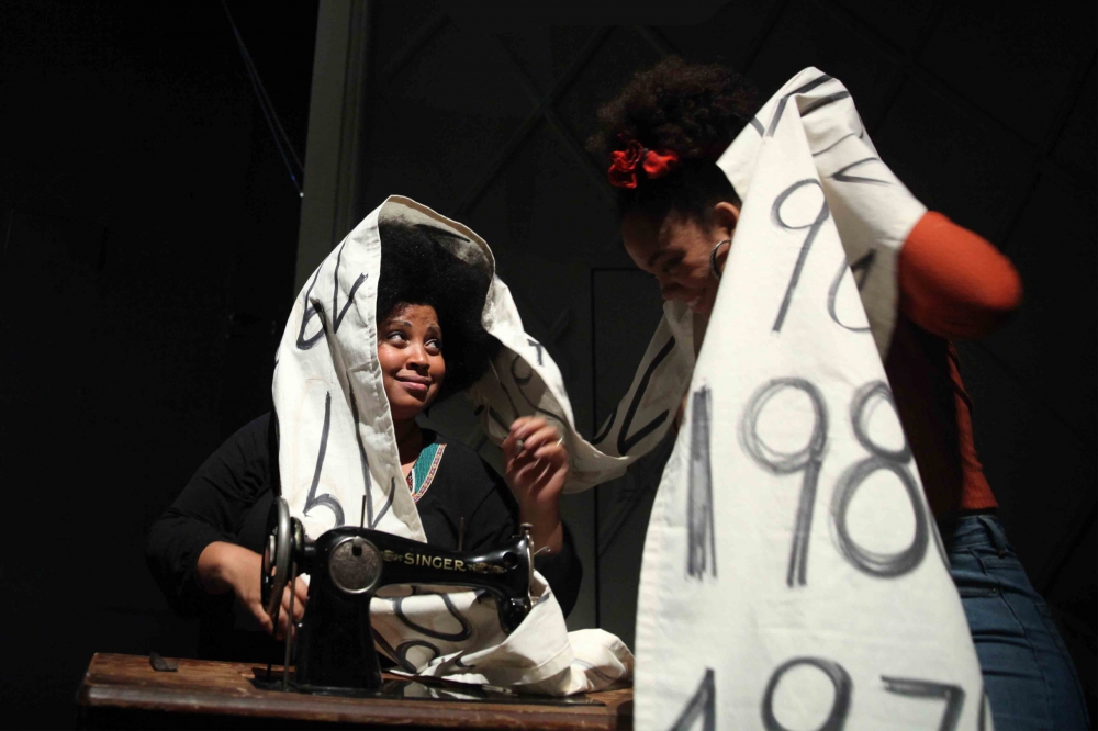 Granma, c’est le nom du yacht par lequel un commando de 82 hommes – dont Fidel et le Che – est arrivé à Cuba en décembre 1956 pour renverser Batista et le régime en place, évènement qui aura lieu deux ans plus tard. Le bateau est désormais une relique à la gloire de la libération de l’île, un symbole fort encore exposé à ce jour au musée de la Révolution à la Havane. Sur scène, les images le seront un peu moins : outre nos quatre protagonistes, une multitude de projections archivistiques nous plongent dans la chronologie de cette révolution, mais nous informe aussi sur les répercussions qui en découlent. C’est un siècle de l’histoire cubaine qui se déroule devant nous. À notre droite, une machine à coudre où défilent les années, afin de bien situer le spectateur ; à notre gauche, un podium où certains pourront mettre en scène divers événements projetés à l’écran. Si le procédé est avéré, il commence par contre à faire date.
