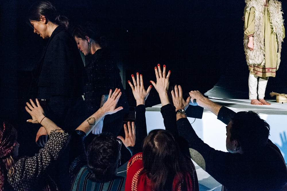 Other Jesus, un spectacle de EW&FCO et Public Recordings ; texte : Evan Webber ; mise en scène : Frank Cox-O’Connell ; interprétation : Frank Cox-O’Connell, Ishan Davé, Marinda De Beer, William Ellis, Thom Gill, Ame Henderson, Ken MacKenzie, Lauren Page Russell, Liz Peterson, Rose Tuong et Evan Webber. Présenté à l’église St Jax dans le cadre du Festival TransAmériques jusqu’au 31 mai 2019.