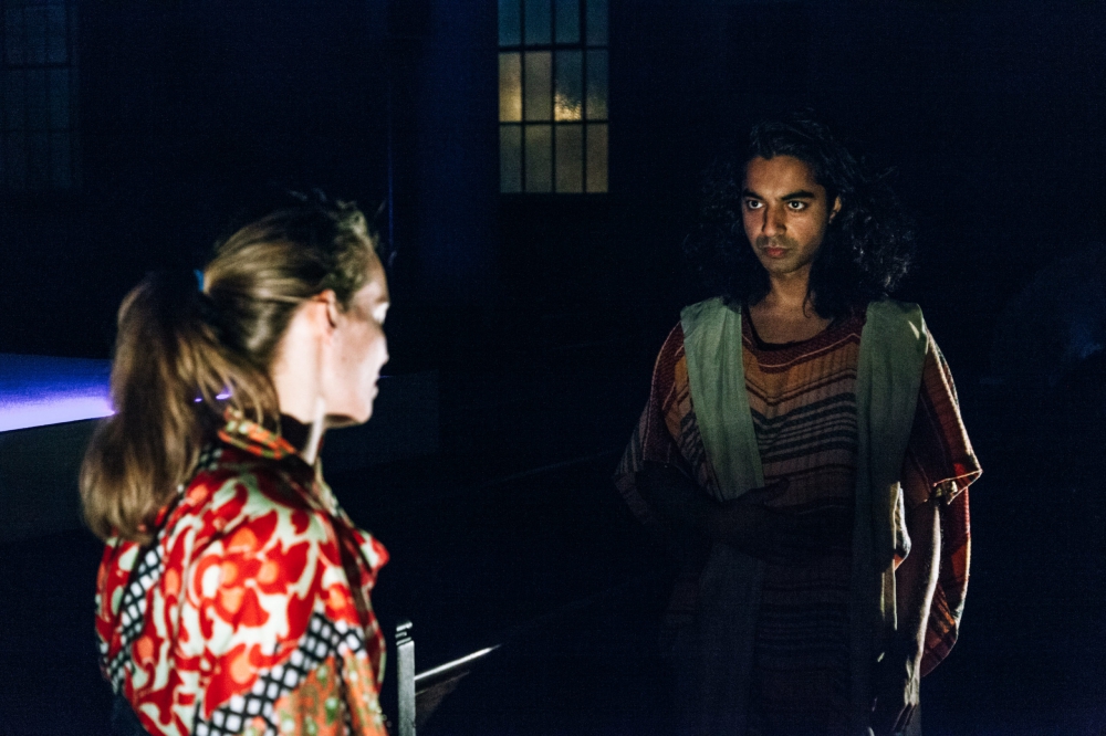 Ce sont les Torontois Evan Webber et Frank Cox-O’Connell qui nous conviaient hier soir à St Jax pour une représentation de Other Jesus, une courte pièce que Webber dit avoir écrit comme un évangile. Le public était installé à l’arrière de la nef, alors qu’à l’avant, à quelques pieds du cœur, se trouvait une scène de fortune montée sur les bancs ; l’essentiel de la pièce s’y jouera, bien que se déroulera un peu – trop peu – de mouvement ailleurs qu’en ce point focal. Sur scène, on retrouve Jésus, Marie et Simon, en plein marché, à vendre des boîtes aux passants et, au détour d’une conversation, tentant de les informer sur leur pratique spirituelle. L’administrateur du village les mettra à l’amende, avant de se rendre compte, observant Jésus, qu’il s’agit peut-être de l’enfant de Dieu. Il n’en faut pas moins pour qu’on leur ouvre les portes du temple en déliant les cordons de sa bourse : exit la pauvreté, bonsoir la consécration. Mais avec un titre tel que Other Jesus, on devine qu’il y aura peut-être erreur sur la personne.