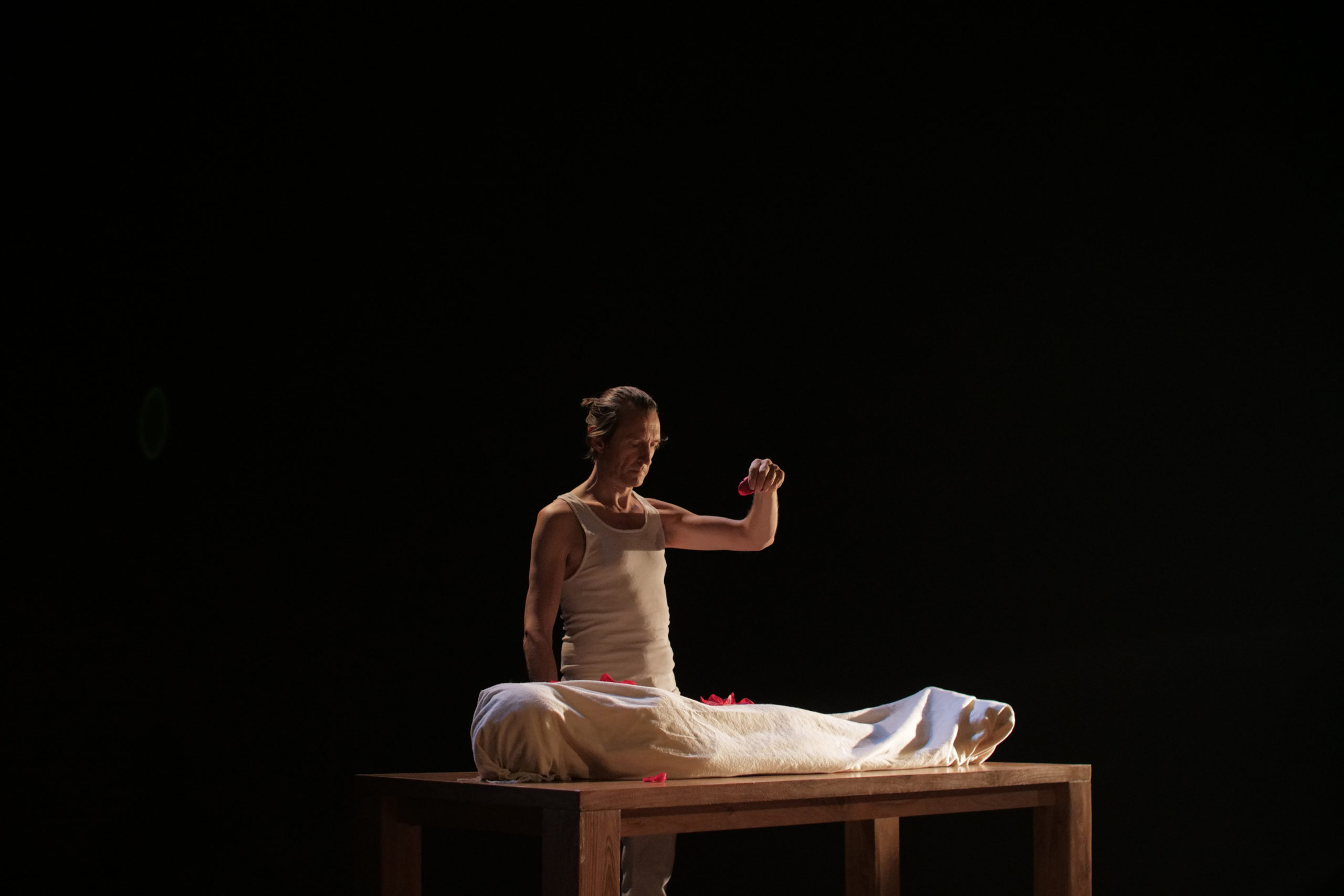 Avec Numain, Stéphane Crête propose une performance théâtrale sans parole mais au propos profond et complexe. Duo entre un humain et une poupée de silicone, la chair et ce qui l’anime montent la voix au contact contrasté de la matière inerte, dans ce qui est à la fois une danse et une lutte entre la vie et la mort. Création vivante s’inscrivant dans un esprit de laboratoire, Numain possède de multiples facettes, à l’image de son créateur comédien, clown, mime, performeur, ritualiste, auteur, enseignant. Mais au-delà d’une exploration formelle des possibilités de jeu avec une partenaire poupée – une sex doll particulièrement réaliste, faut-il préciser – et des enjeux thématiques d’une telle proposition, un véritable rituel se déploie et s’installe sur scène, entre profane, érotisme, désespoir et sacré.