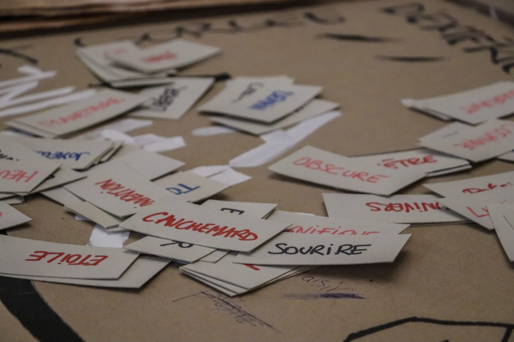 Voilà que la flânerie est interrompue, sans qu’on ait eu le temps de tout voir : on sort du rêve ou on y entre, l’ordre des choses est bouleversé. C’est le branle-bas de combat, nous sommes regroupés et sollicités pour faire place les uns aux autres, afin d’écouter ce qu'on nous présente comme la lettre d'un disparu. Il y a soudain urgence de s’organiser, de distribuer des rôles. Dans cette république, quelques personnes sont nommées « porteurs de paroles », d’autres « rapporteurs ». On pige, on vote, on joue à être ensemble en partageant un même rêve.