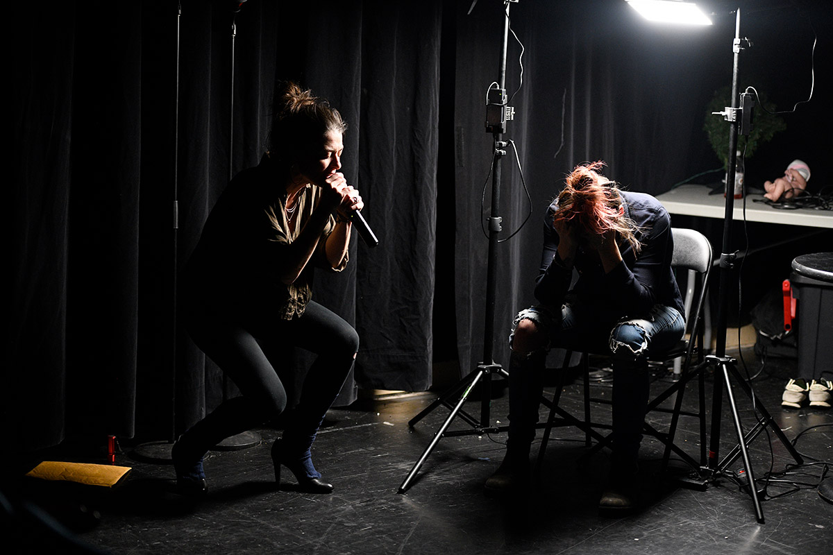 M.I.L.F. échappe également aux dangers du misérabilisme, notamment parce que la pièce laisse les femmes s’abandonner au défoulement. Une première fois à mi-parcours, dans un moment qui prend des allures d’une chanson de Nine Inch Nails ou de Marilyn Manson (oreilles sensibles, soyez prévenues!) – ce moment est judicieusement suivi du premier vrai espace de rencontre. Assises à table, bière à la main et pizza à la bouche, les mères expriment leurs doléances et créent l’ébauche d’un mouvement collectif ; derrière elles, le metteur en scène Pierre-Antoine Lafon Simard vient réorganiser l’espace scénique, créant un faux moment de pause dans le spectacle (les trois actrices semblent sortir de leur personnage), sans que la fiction ne perde ses droits.