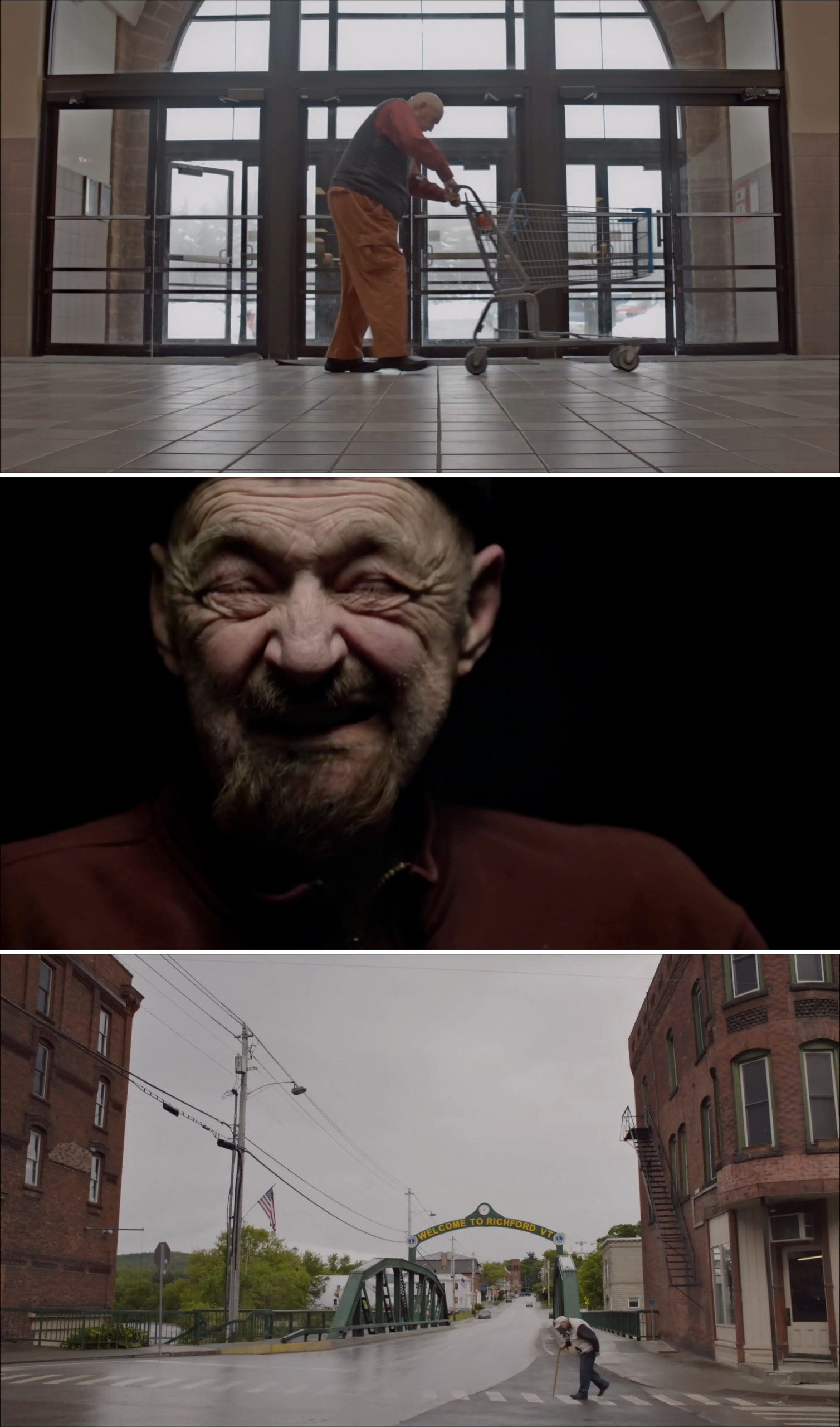 « You asked me if wrestling was real. I had 6000 wrestling matches over a period of 35 years, and I’m all wound up. I have to walk with two canes, two crutches or my walker. That’s how real wrestling was », dira Vachon (qui oscille constamment entre le français et l’anglais) à la fin du film, alors qu’il enfile péniblement un costume de père Noël pour gagner quelques dollars supplémentaires en ce temps des fêtes. Il possède déjà un petit comptoir de brocante situé au centre d’achats de Burlington, où il vend différentes marchandises liées à l’univers des Vachon. Brisé par tant de combats, le dos constamment courbé, Vachon se déplace péniblement dans cet espace bien plus factice que tous les rings où il s’est battu. Un des choix esthétiques des Derniers vilains est de rythmer l’image par les déplacements de Vachon, qui traverse maintes fois le cadre à pas de tortue, alors que la caméra capte avec douceur ses gestes qui, malgré la vieillesse, sont tous aussi lisibles et explicites que ses mimiques de méchant lutteur. Burlesque et mécanique, recomposé par différents pontages et opérations, le corps de Vachon est un corps éminemment cinématographique : il perce l’écran, fait signe au spectateur et raconte déjà une histoire. Il faut louer Rinfret d’avoir reconnu cette qualité si particulière à ce corps d’ancien lutteur, réceptacle d’affects, de gestes et de souvenirs dont la vérité immédiate transcende tous les mondes faux dans lesquels il a pu se mouvoir. Le cinéma – le cinéma documentaire en particulier – est au service d’une telle vérité du corps.