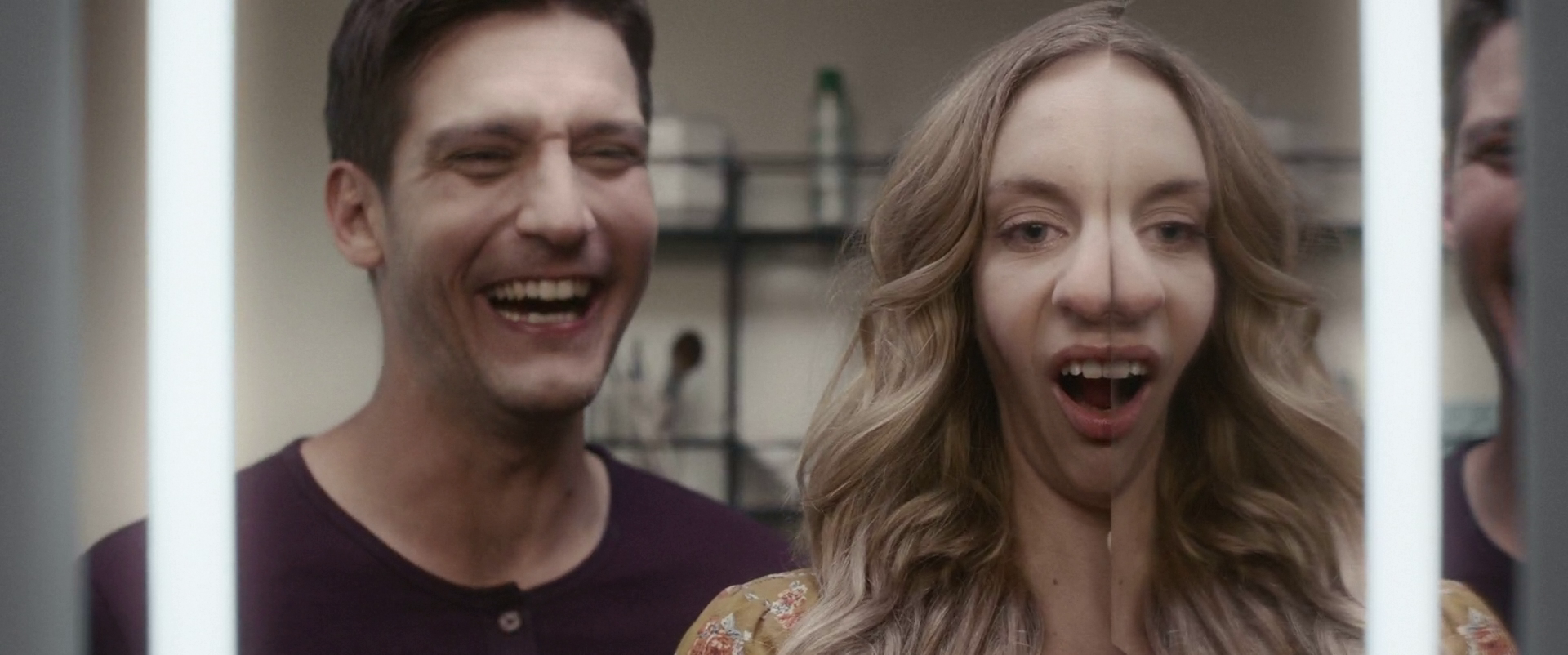 Dans Le rire, le schéma de la mort communautaire se trouve inversé, puisque Valérie sera la seule survivante d’une exécution massive. Au fond d’une fosse commune, où elle est laissée pour morte, la jeune femme voit s’accumuler par dizaines les cadavres autour d’elle. La nuit tombée, elle devra lutter contre les corps inertes pour trouver une façon de sortir de terre. Alors que tous les films de Laroche tournent autour d’un moment traumatique qui ne sera jamais montré, Le rire s’ouvre au contraire avec un prologue sous forme d’analepse (la scène est préfacée d’un écran noir où on lit simplement le mot « Avant ») à la fois très crue et presque fabulée, en raison de la nature hallucinatoire et incompréhensible des images qui nous sont montrées : coups de feu, cris, bombardements, pelotons d’exécution dont les victimes ne sont pas des soldats, mais des civils… nous sommes bien devant un génocide. La réalité de la guerre est d’ailleurs parfaitement rendue : plongé in medias res dans cette horreur, le spectateur est tout aussi désorienté que le personnage de Valérie, qui, au côté de son amoureux et de centaines d’inconnus, se fait déshabiller, déposséder de tous ses biens matériels et amener vers la mort. Tandis que, historiquement, le cinéma québécois s’intéresse à la survie de la communauté suite à la disparition de l’un de ses membres, Le rire choisit plutôt d’investir le thème de la vie après la communauté. Montrée en ouverture dans toute sa violence, cette mystérieuse guerre civile ayant frappé le Québec ne sera ensuite qu’évoquée subrepticement. Dans un monde miraculeusement rétabli, on comprend que Valérie a bel et bien survécu, qu’elle s’est refait une vie avec un nouveau compagnon, un travail et des amis. Rarement le sentiment d’« inquiétante étrangeté » décrit par Freud n’a été rendu avec autant de force à l’écran. Doit-on croire ce que nous voyons ? Film éminemment dialectique qui, à la manière de ceux de David Lynch, multiplie les passages entre les univers incompossibles, Le rire va proposer une réflexion sur la nature des images et sur le degré de croyance qu’il faut accorder à la réalité. Autant de questions complexes que Laroche arrive à traduire en termes cinématographiques.