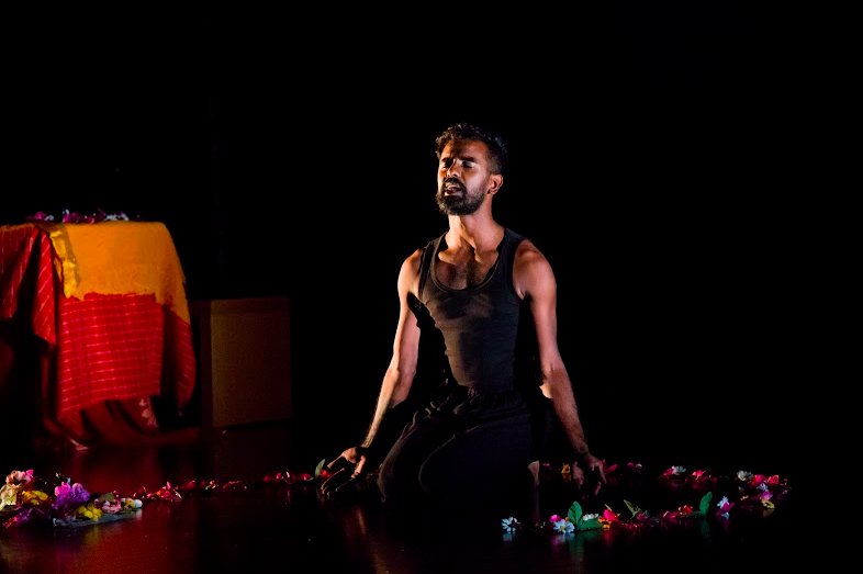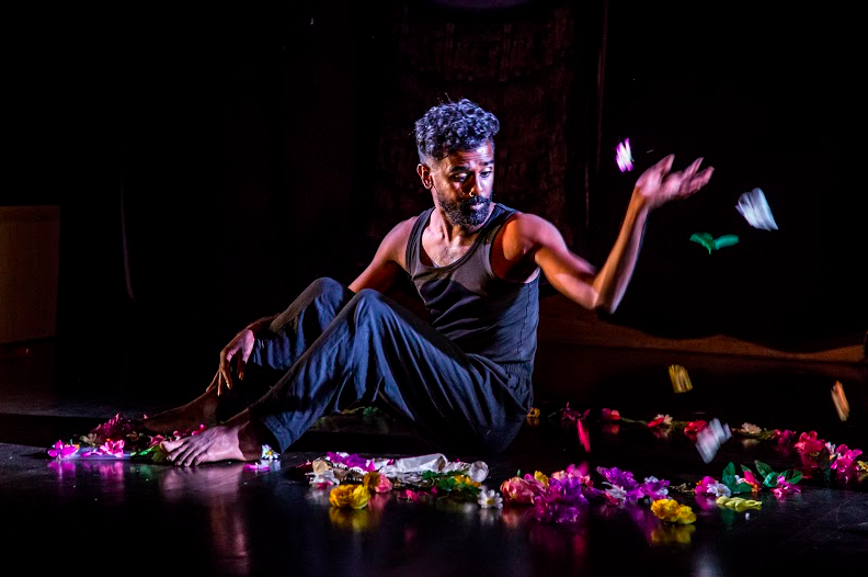 Concrètement, ZOM-FAM est un solo intimiste de quatre-vingt-dix minutes qui mêle les conventions du spoken word, du théâtre, du rituel, du kathak (une danse classique indienne) et du séga (la danse folklorique mauricienne) au cœur d’une performance qui donne forme à la poésie à travers le corps, la voix, l’espace et le mouvement. Aussi bien dans le recueil que dans le spectacle, Kama La Mackerel mélange l’anglais, le créole, le tamoul et l’hindi, en racontant l’histoire d’un·e enfant transgenre imprégné·e par l’héritage colonial des plantations de cannes à sucre, alors qu’iel apprend à trouver des langages lui permettant d’exprimer son genre comme une force décoloniale et ancestrale. Nous avons souhaité nous entretenir avec l’artiste afin de réfléchir à l’essence du projet, mais aussi à l’impact que ces annulations répétées ont pu avoir sur le spectacle.