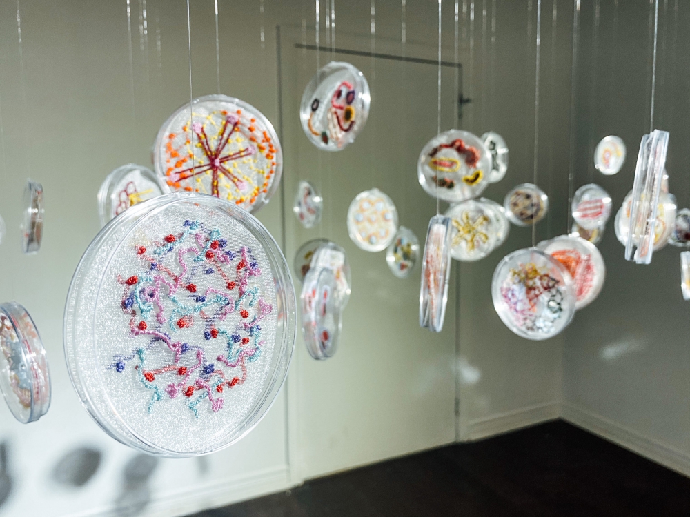 VG : Je crois que les deux sont possibles. La série a commencé par ma découverte de cette technique de broderie japonaise qui s’appelle le bunka. J’ai débuté avec quelque chose de très cellulaire, ensuite les boîtes de pétri sont arrivées. Ça a vraiment été comme une recherche en labo, j’ai fait des tests, ça m’a donné d’autres pétris donc j’ai fait d’autres tests. Je ne savais pas du tout vers quoi je tendais.