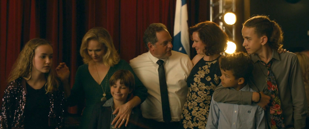 « Bonsoir tout le monde. D’abord je veux remercier chacun d’entre vous pour votre implication. Ce n’est pas toujours évident de faire du porte-à-porte, de vendre du petit chocolat et d’aller voir tous les commerçants, même les moins faciles… Vous savez de qui je parle ! Pourtant, vous l’avez fait, et ensemble on s’est relevé, on a soigné nos blessures et cinq ans plus tard on est plus fort. Maintenant grâce à chacun d’entre vous on va avoir un bel endroit pour se recueillir et, surtout, un magnifique parc pour nos enfants. » C’est sur ses propos, parsemés de rires de connivence et qui se terminent par des applaudissements que s’ouvre Les nôtres. Ces mots sont prononcés par Isabelle, la mère de Magalie lors d’une soirée soulignant l’inauguration d’un espace dédié à la mémoire des disparus lors d’une tragédie ayant frappé Sainte-Adeline quelques années plus tôt. Elle donnera ensuite la parole à Jean-Marc (Paul Doucet), le maire de cette petite ville, qui complétera ce discours avec des paroles encore plus édifiantes. Comme le dira un personnage secondaire plus tard dans le récit, les gens de cette petite communauté sont « tricotés serrés ».