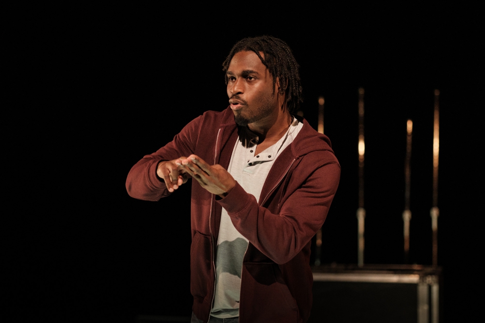 Au-delà de ces questions d’identification, qui sont néanmoins primordiales, Anglesh Major est un interprète doué et charismatique, qui s’est très visiblement immergé dans le personnage avec un jeu aussi raffiné que physique. Major sait tour à tour, lorsque sont évoquées des conversations avec d’autres personnages et, puisqu’il est seul sur scène, moduler des accents féminins, masculins, québécois, latinos avec une dextérité qui force l’admiration. Il arrive autant à mettre de l’avant le côté joueur et cabotin de son personnage – qui déclenche de nombreux rires dans la salle – qu’à rendre sa violence, sa détresse, son désir d’être vu, enfin, par une société où il est constamment invisibilisé. Le King Dave qu’il présente chez Duceppe est un personnage blessé par une société raciste qui ne voit en lui que sa chair, qu’un déterminisme social qu’il finira, bien malgré lui, par incarner. On en profite du même coup pour aborder, par exemple, de façon brillante les biais délétères des forces policières.