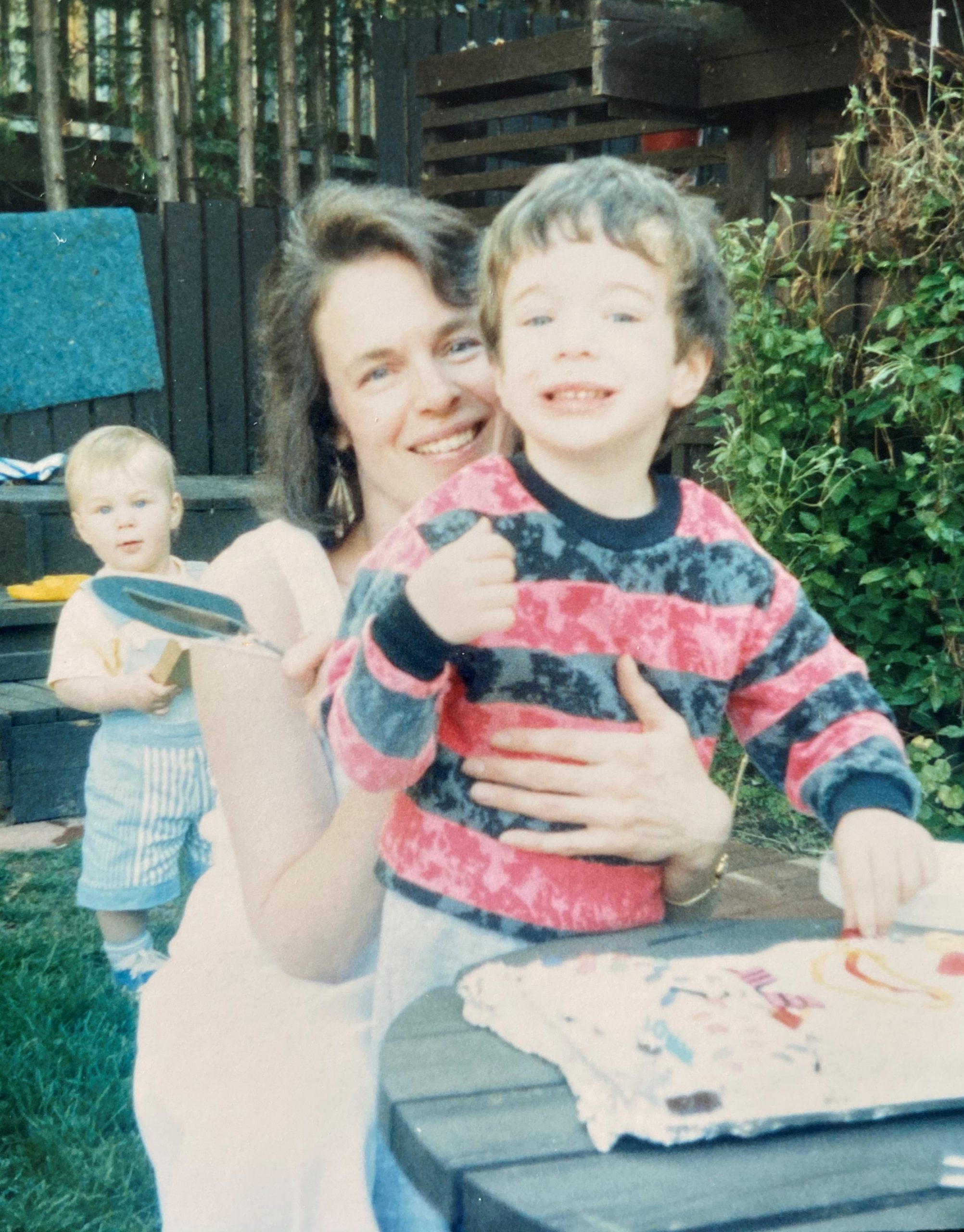 En effet, Tannahill étant seul en scène pour lire le texte derrière un lutrin, tout jeu physique a été évacué de Declarations. En remplaçant cet aspect du spectacle par la projection d’une diapositive de photos en arrière-plan, Tannahill conserve la poésie produite par l’association texte/image. Ici, par contre, le sens s’arrime à une perspective unique, celle de l’auteur, ce qui rend la performance beaucoup plus intime. Par exemple, lorsque Tannahill déclare « This is my mother », c’est bien une photo de sa mère qui est projetée, là où la gestuelle des comédien·nes proposait initialement un portrait diffracté de ce que leur évoquait l’idée de la mère. On retrouve cette dimension personnelle même quand les associations entre texte et image ne sont pas aussi littérales : à la déclaration « This is the letter J », par exemple, c’est un buttplug en forme de queue de chien qui nous est montré ; c’est l’interprétation choisie par Tannahill qui fait image.