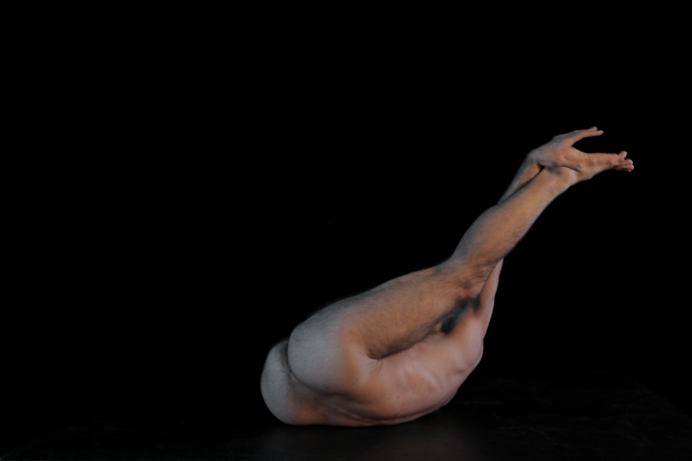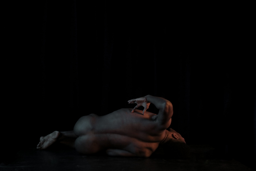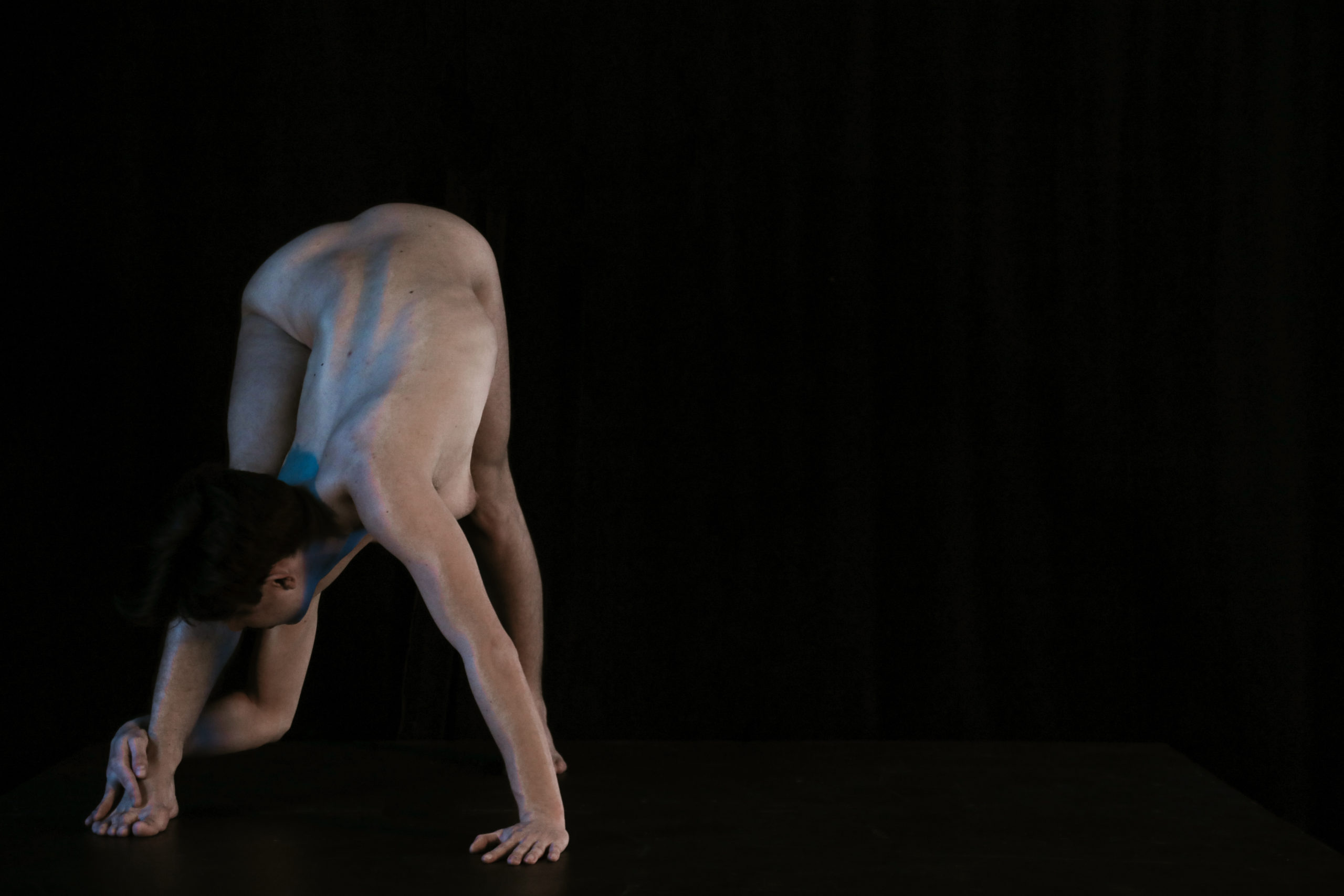 Pour qui est familier·ère avec les travaux de Michel Foucault et Paul B. Preciado, il est difficile d’assister à ce spectacle sans y voir de multiples échos à leurs réflexions philosophiques et queers sur l’érotisation du corps, la désexualisation du plaisir et la contrasexualité. « Je pense que nous avons là une sorte de création, d’entreprise créatrice », disait Foucault. « L’idée que le plaisir physique provient toujours du plaisir sexuel et l’idée que le plaisir sexuel est la base de tous les plaisirs possibles, cela, je pense, c’est vraiment quelque chose de faux. [...] Nous pouvons produire du plaisir à partir d’objets très étranges, en utilisant certaines parties bizarres de notre corps, dans des situations très inhabituelles, etc. » Cette valorisation d’une dégénitalisation du désir est au fondement de Public/Private Parts : dans les performances vidéo qui sont projetées, la recherche sensuelle des performeurs·euses passe par le toucher (le leur et celui des autres), mais aussi par le contact avec des matières organiques comme de l’eau, de l’huile, de la terre, des plantes (une fleur de strelitzia ou une branche d’aloès). C’est aussi le cas des performances présentées en salle : les trois interprètes, magnifiquement mis· en valeur par les éclairages de Karine Gauthier, explorent et prennent conscience des limites de leur corps en le touchant, en le mouvant, en le tordant, mais aussi en le caressant avec des « objets étranges » comme un tuyau de plastique ou un morceau de tissu. En réinvestissant ainsi la dimension tactile et sensuelle de leur corporéité, les performeurs·euses nous rappellent que toucher une autre personne avec respect est inévitablement un acte de réciprocité, et que cette égalité s’effectue sous une forme de partage qui ne saurait laisser intact le sujet qui s’y soumet.
