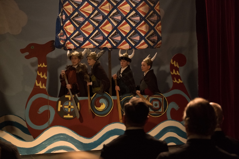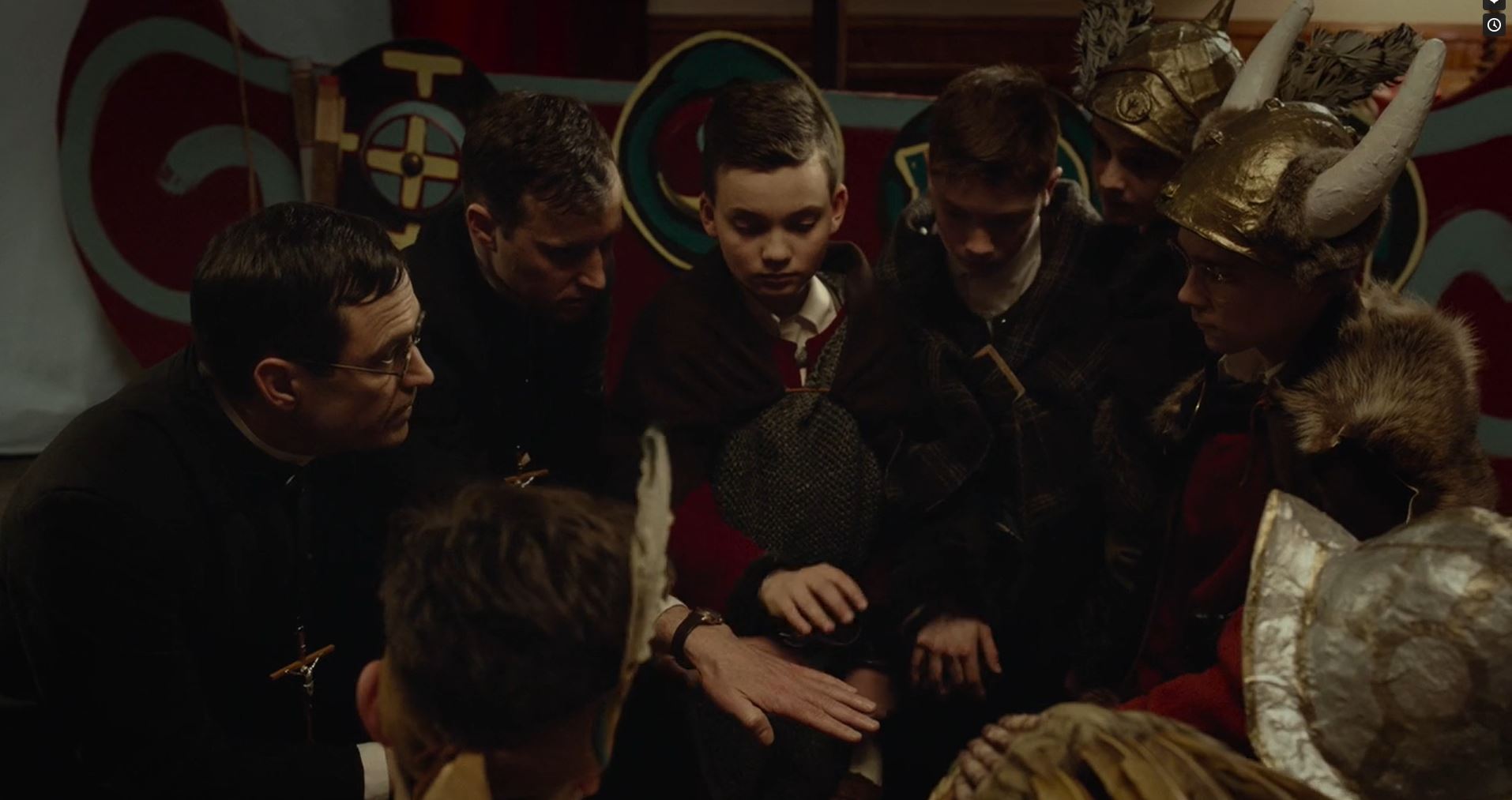 « L’apprentissage n’a pas à être quelque chose d’amusant. Le travail de l’enseignant sera toujours d’apprendre l’effort à ses élèves », lance le Frère Visiteur (Guy Thauvette) à Frère Jean, professeur dans un petit collège de Charlevoix à la fin des années 1940. Dans la représentation théâtrale qui ouvre le film –où se joue une découverte de l’Amérique par les Vikings – un groupe de jeunes avec leurs épées en bois et leur drakkar en carton va réécrire l’Histoire, coupant l’herbe sous le pied à Christophe Colomb et autres « grands explorateurs » de ce monde. « C’est vrai. Mais c’est aussi de les contaminer de l’envie d’apprendre. Une fois qu’ils ont ça, ils y mettent l’effort », répond le jeune Frère à son supérieur, toutefois peu convaincu par l’idée. C’est que, avec sa pièce, Jean s’est attaqué à un double problème : d’abord, à celui de l’irréductible binarité entre l’enseignement et le plaisir, le labeur et la frivolité ; puis, au problème, peut-être encore plus grave, de l’hégémonie de l’Histoire « officielle », avec ses mythes fondateurs présentés comme des vérités éternelles. Filmée dans un savant jeu d’ombres et de lumières par François Gamache, cette confrontation initiale entre Frère Visiteur et Frère Jean nous livre le cœur du film, soit la thématique de la transmission, tandis que l’enseignement novateur de Jean l’éclectique s’oppose aux dogmes immuables de l’Église.