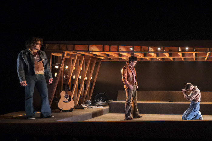 À cette trame de 1977 vient s’ajouter, de manière contrapunctique, celle de 1991, année où sont de nouveau rassemblés Jude, Hoke et Frayne, à l’occasion de la mort d’Acton. L’alternance entre les temps noue ainsi l’intrigue, en resserrant en amont et en aval le noyau dramatique — l’agression —, et en insérant dans les tableaux scéniques qui se succèdent des thèmes qui viennent indéniablement étoffer la matrice conceptuelle de la pièce. À travers un pacte d’amitié noué entre les garçons sont distillées les notions de sacrifice, de dette et le lot de chantage affectif qui en découle ; à travers la solidarité qui caractérise le rapport entre Jude et Acton sont explorées l’empathie, la protection d’une personne aimée ; à travers l’astuce temporelle de la narration s’insèrent les questions du consentement et du suicide ; de façon plus générale, à travers les aléas de cette trame narrative stratifiée, s’intériorise un monde extérieur implacable dont chacun souffre à sa façon, fût-il agresseur ou agressé·e. De fait, et c’est là une très grande qualité, le récit de La brèche assume la complexité de son sujet en prenant le temps d’en dérouler patiemment les écheveaux. Soulignons aussi que cette complexité est bien servie par la mise en scène, simple et efficace, quoique statique (les distances sociales étaient la plupart du temps observées), avec un décor à deux niveaux facilitant l’étayage du passé et du présent.