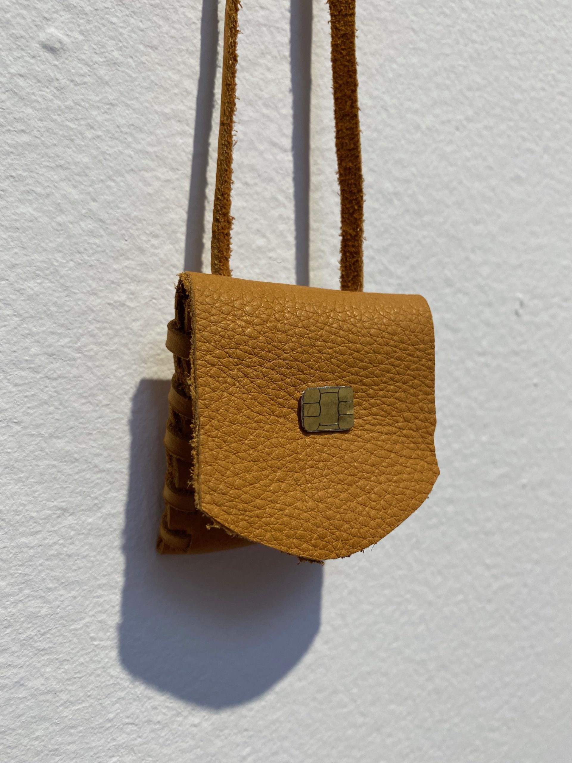 De retour devant les deux pochettes en cuir décorée de cartes SIM, je me questionne sur la signification de cet objet. Disque dur de notre vie, il est presque aussi chargé émotionnellement que pourraient l’être nos cendres. Que léguera-t-on à nos enfants ? Nos jeux, nos lettres, nos histoires et/ou nos téléphones cellulaires ? De la vidéo pixellisée à l’image des souvenirs qui se dissipent avec le temps jusqu’aux supports numériques obsolètes comme des langues qu’on ne parlerait plus, toutes ces voix mêlées résonnent en moi et au-delà, dans une cacophonie familière.