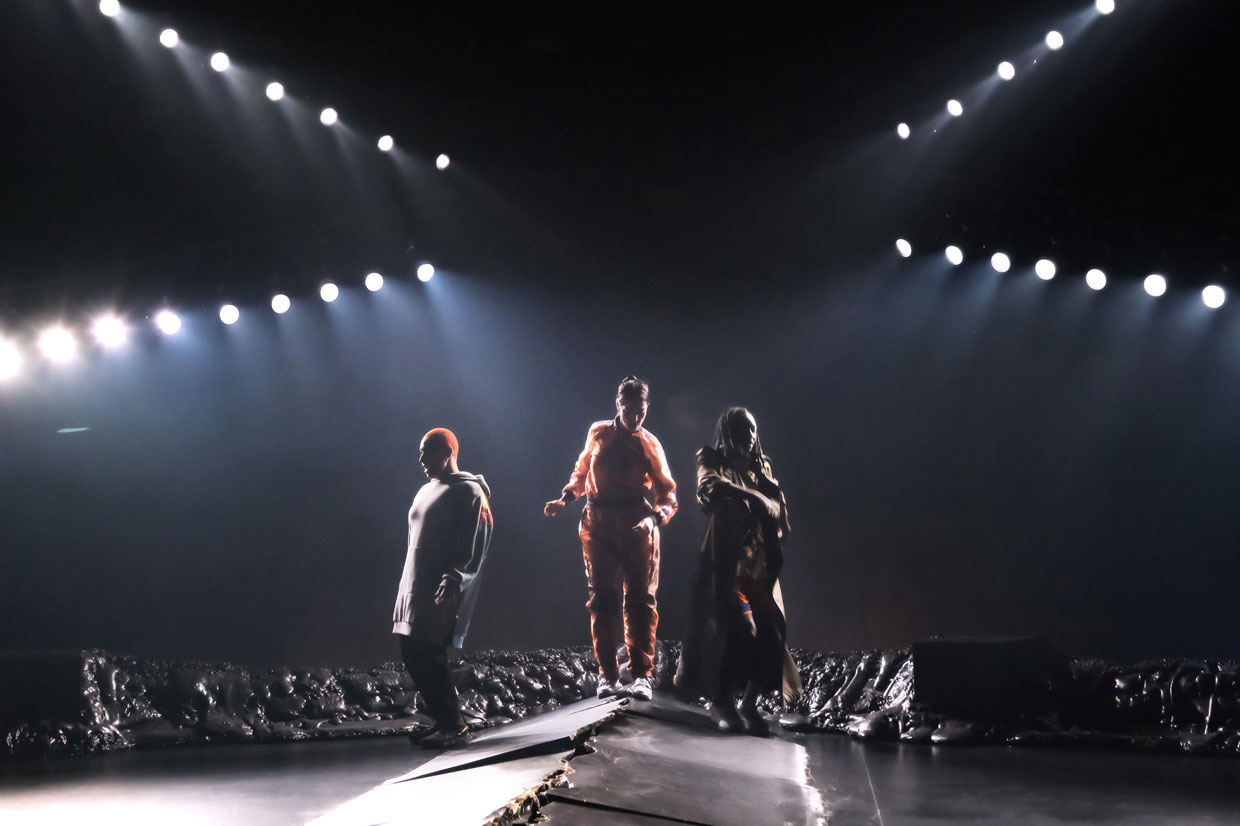 Avec ses costumes contemporains composés de track suits et de shorts de basket, le spectacle rappelle que la lutte de Marguerite Duplessis, vieille de 280 ans, est toujours vivante aujourd’hui. Accompagnées d’un rap intégrant des chants autochtones, les projections d’images d’archives du procès de Marguerite et les lectures de griefs s’entremêlent à des formes futuristes et à des images du Vieux-Port de Montréal d’aujourd’hui. Bien que l’histoire se répète, le spectacle entretient l’espoir d’un monde plus juste. En créant une expérience collective qui fait vibrer les corps, même parmi le public, la voix de Marguerite nous parvient d’un autre espace-temps pour nous rappeler que la lutte des femmes autochtones et noires est un feu qui rejaillit sans cesse.
