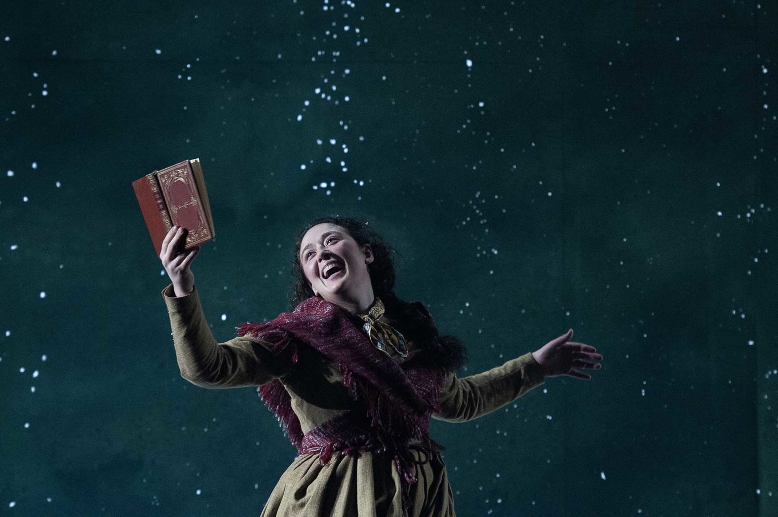 Si quelques transitions ou changements de costume manquent d’aisance en raison d’une artificialité encore trop apparente, la mise en scène témoigne généralement d’un grand souci de fluidité. Les choix opérés par Tremblay rendent compte d’une vision esthétique claire. Une autre qualité de cette production est la justesse et la cohésion de sa distribution. Le quatuor des sœurs March, composé de Rose-Anne Déry, Laetitia Isambert, Sarah Anne Parent et Clara Prévost, est crédible et bien campé ; chacune apporte une couleur bien distincte à son personnage. À l’occasion, leur interprétation paraît cependant trop typée, comme si on avait opté ici et là pour un jeu plus grossier (à la faveur d’un effet comique) au détriment de la nuance. Heureusement, ce détail ne devient jamais agaçant : les interprètes savent marcher sur cette fine ligne avec adresse, sans basculer dans la franche caricature. À ce titre, Prévost et Isambert se démarquent par la sensibilité et la finesse qu’elles apportent à leur interprétation, nous incitant à nous investir davantage dans le parcours de Meg et Amy que celui de Beth et Jo – bien que ce soit cette dernière qui mène le récit. Il faut également souligner le travail de Dominique Quesnel, qui rayonne dans le rôle de Tante March. Ses apparitions ponctuelles sont des moments comiques dont l’indéniable efficacité rend compte de la grande expérience de la comédienne.