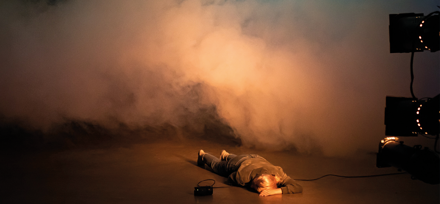 Quatre voiles blancs sont suspendus au-dessus de cette scène cernée par le public. Une légère brume nous enveloppe et crée une atmosphère spectrale qui perdurera tout au long de la pièce. Dans Manque, un voile flotte perpétuellement entre l’individu et le monde — auquel il est pourtant imperméable, envahi par une souffrance universelle qui le dépasse —, rendant ce premier étranger aux autres comme à lui-même.