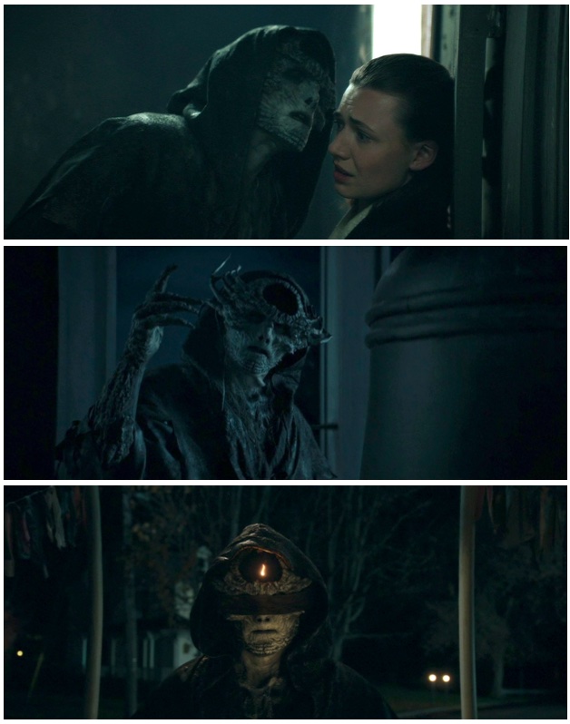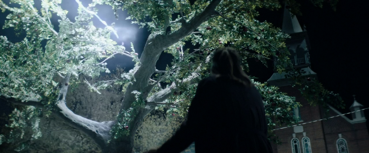 « C’était la Mort. La Mort en personne. Elle se tenait la tête de côté. La faucheuse est ainsi faite qu’elle se tient dans l’angle du profil. Le cou cassé. De là la ressemblance avec un hiéroglyphe », lit-on dans le conte de Pellerin. Ce que garde Leclerc de cette description du personnage, ce n’est pas tant sa description littérale, mais, précisément, la possibilité de l’interpréter comme un hiéroglyphe, de le décoder comme un signe. « Fred a accepté avec bonheur de me laisser faire primer le cinéma, l’image, sur la parole » explique Leclerc. Les rares moments où la Mort parle aux autres personnages seront par ailleurs les moins convaincants. Avec cette grande faucheuse héritière de la Bête cocteauesque, la parole du conteur laisse sa place à la poésie du cinéma.