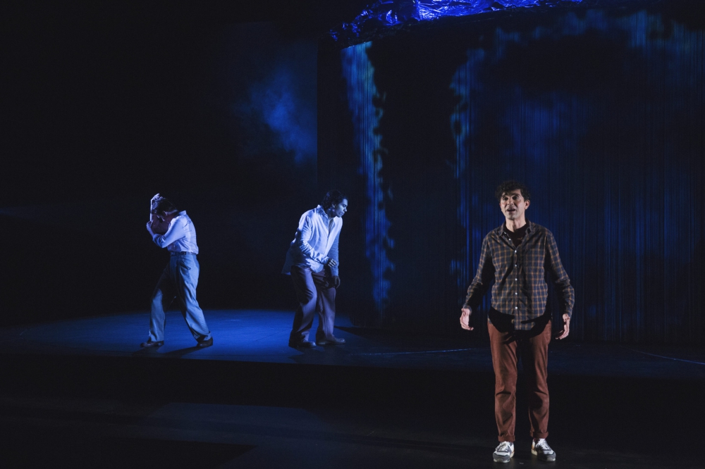 Dans un décor des plus simples (un rideau perlé à l’arrière de la scène, surmonté d’une sorte de dôme en papier aluminium qui détonne dans la sobriété ambiante), Meursault et son entourage – Marie (Evelyne Rompré), Raymond (Daniel Parent), L’Arabe (Sabri Attalah) et le prêtre (aussi interprété par Daniel Parent) – remontent le fil des événements pour la cour de justice, que l’on ne verra et n’entendra jamais. Une dose d’humanité est ainsi réinjectée dans le roman de Camus, porté presque uniquement par le point de vue de Meursault et par la parole du système, distribuée entre l’avocat et le procureur. Ici, Raymond, Marie et L’Arabe ont tout l’espace du monologue pour exister et pour dire. Ces monologues constituent d’ailleurs, selon moi, les moments forts de la représentation. Les personnages de Raymond et du prêtre, pourtant les plus petits rôles dans la pièce, sont rendus mémorables par l’interprétation de Daniel Parent, d’une justesse et d’une entièreté admirables. De même, le témoignage de L’Arabe, qui n’aura jamais eu de voix de son vivant mais auquel Evelyne de la Chenelière permet de témoigner d’outre-tombe, pour lui-même mais aussi pour tous les étrangers