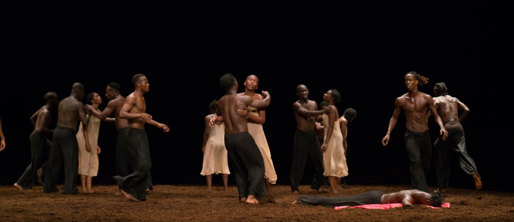 La chorégraphe Germaine Acogny, en rendant hommage aux survivantes du génocide des Tutsi au Rwanda, a retrouvé le sens de la terreur humaine dans l’héritage de Pina : les grandes émotions, nées des tragédies trop réelles, sont ici transférées sans paroles dans la gestuelle des filles de ces survivantes qui dansent. Un seul corps féminin, enveloppé d’une mince robe rouge, sein dénudé, suffit à faire jaillir ce que Nijinski voyait dans l’éclosion de la nature printanière ; ce que Bausch avait elle aussi signifié, en faisant danser sa troupe phénoménale sur la terre répandue sur la scène : les peuples piétinent la nature, sans égards à ce que cela coûte en déchirures.