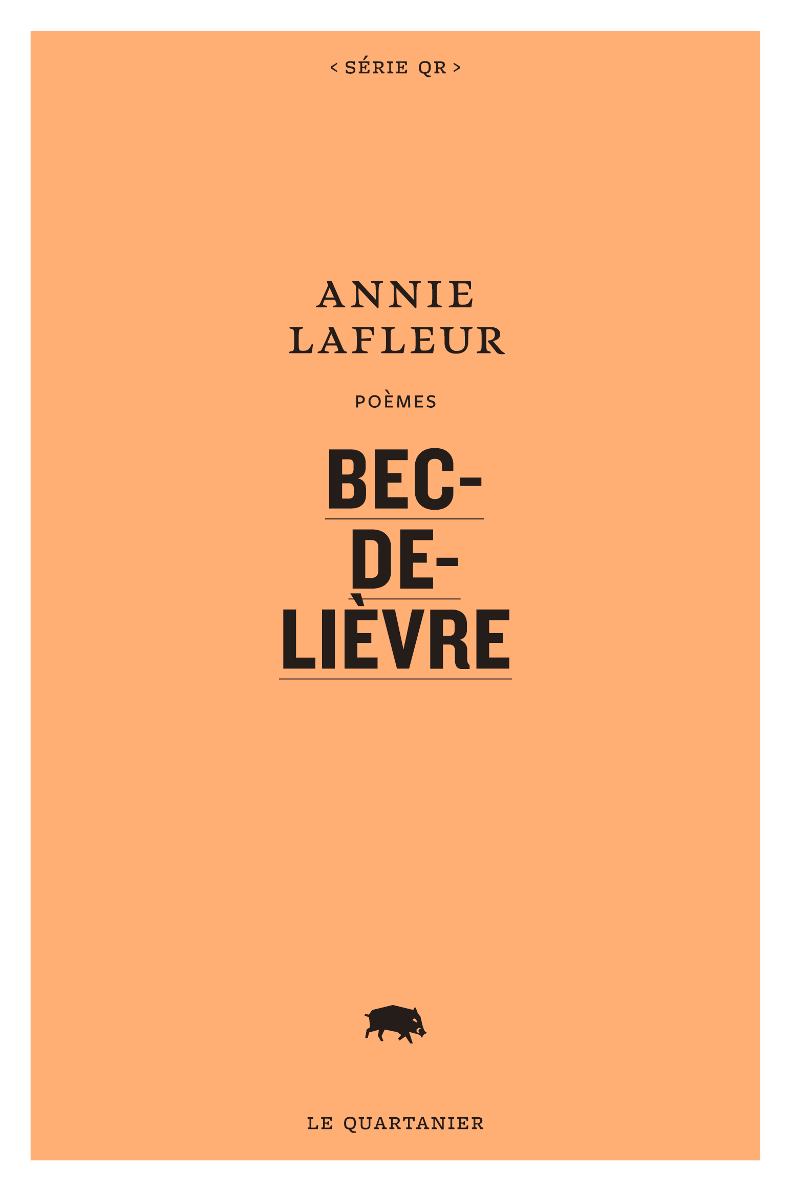 Annie Lafleur, avec Bec-de-lièvre, signe son quatrième recueil, son deuxième au Quartanier. Son travail se caractérise par sa problématisation de la représentation : ses poèmes accumulent les saillies et les lignes de fuite autour d’objets ou de situations qui se dévoilent à peine. La lecture, réduite à des hypothèses et à des tâtonnements, ne restitue que l’incertitude quant à ce qui évoqué. Son plus récent livre poursuit cette exploration, comme en témoigne la quatrième de couverture, où Lafleur circonscrit son projet d’écriture en multipliant les énigmes : « La lèvre déchirée cherche le reste du corps dans l’habit des animaux. S’il n’y a personne, il y a beaucoup de choses, à déterrer, à casser, à perdre. » Cette « lèvre déchirée » serait-elle une métonymie qui renverrait à la bouche, et par corollaire, à la parole ? Et ce « corps » recherché serait-il cet être authentique dissimulé sous « l’habit des animaux » ? Qu’en est-il de cette « langue [qui] fuit la bouche, gagne du terrain, fouille les buissons » ? Est-ce la poésie ? Sans doute, mais sur quoi gagne-t-elle « du terrain » ? Que sont « les buissons » ? Et puis, que doit-on comprendre de ce passage vers la fin du texte : « De l’enfant à la vieille bête, celle qui aura tout avalé voudra tout revoir, pour une dernière marche en forêt » ? Doit-on l’interpréter comme l’aveu d’un projet autobiographique ? À quoi renvoie cette ténébreuse « dernière marche en forêt » ?